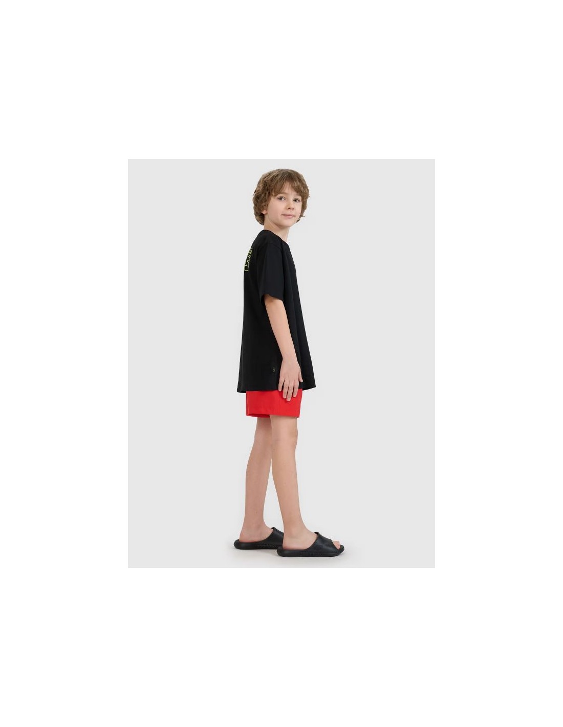 Boys' beach shorts - comfort and freedom of movement for summer Boys' beach shorts are a great choice for summer – perfect for everyday activities on warm days , beach fun , and recreational swimming . Their relaxed boardshort cut ensures complete comfort and mobility , even during intense activity. Made of durable synthetic material with 6% elastane , the shorts are stretchy , easy to care for, and fit perfectly. Quick-drying fibers help wick moisture away from the body, ensuring they remain comfortable even after swimming. An additional benefit is the mesh lining of the inner briefs , which provides enhanced coverage and ventilation . An elastic waistband with an adjustable drawstring allows for a snug fit, increasing comfort and preventing the shorts from slipping down. Product features – boys boardshorts : Size range 122-164 – perfect fit for children of all ages Loose fit – comfort and freedom of movement 6% elastane – flexibility and comfort during activity Quick-drying material – wicks away moisture, increasing wearing comfort Uniform colors – suitable for many beach styles Mesh inner briefs – better coverage and breathability Waistband with external drawstring – adjustable and better fit Light and functional beach shorts for boys , perfect for summer adventures – from sunbathing to playing in the water.