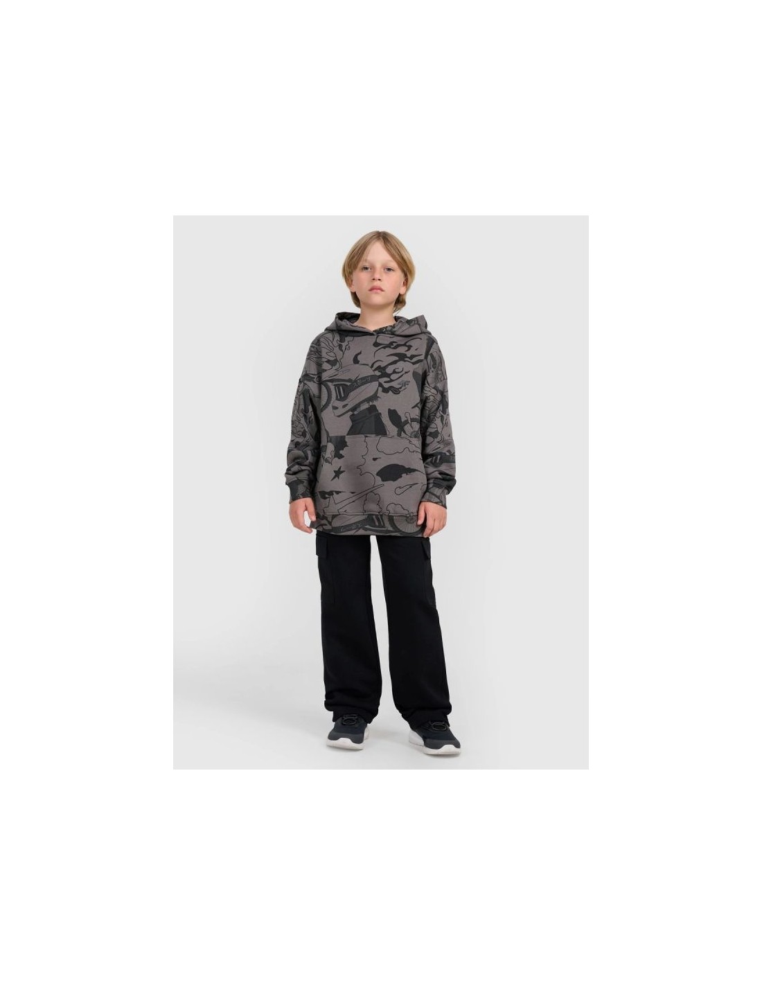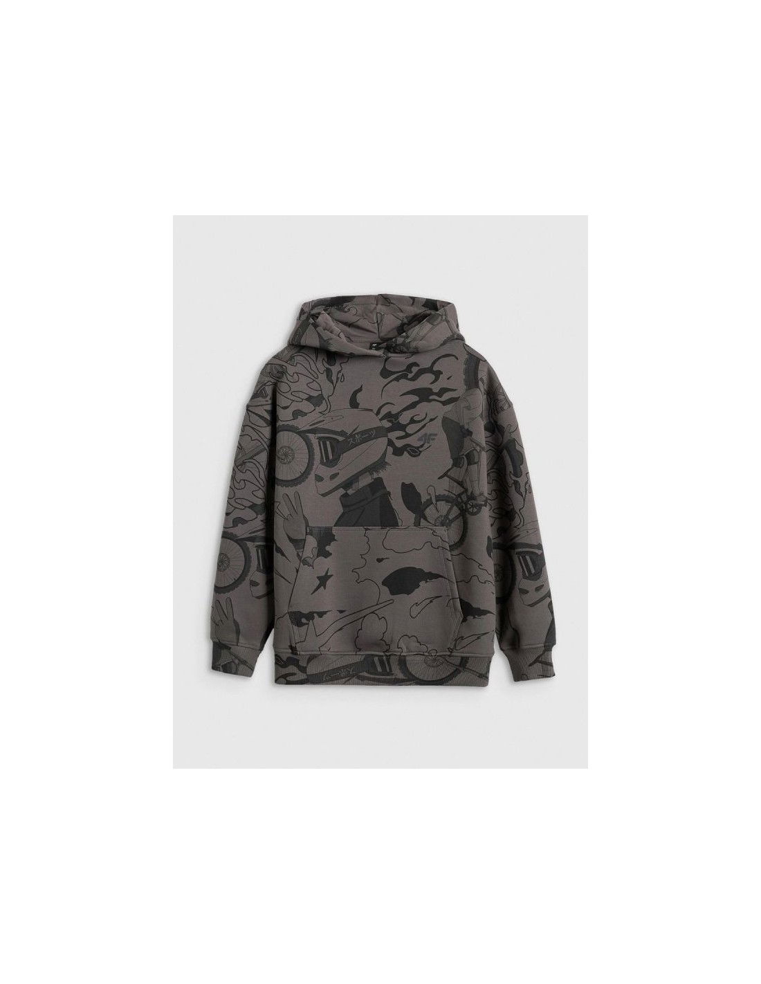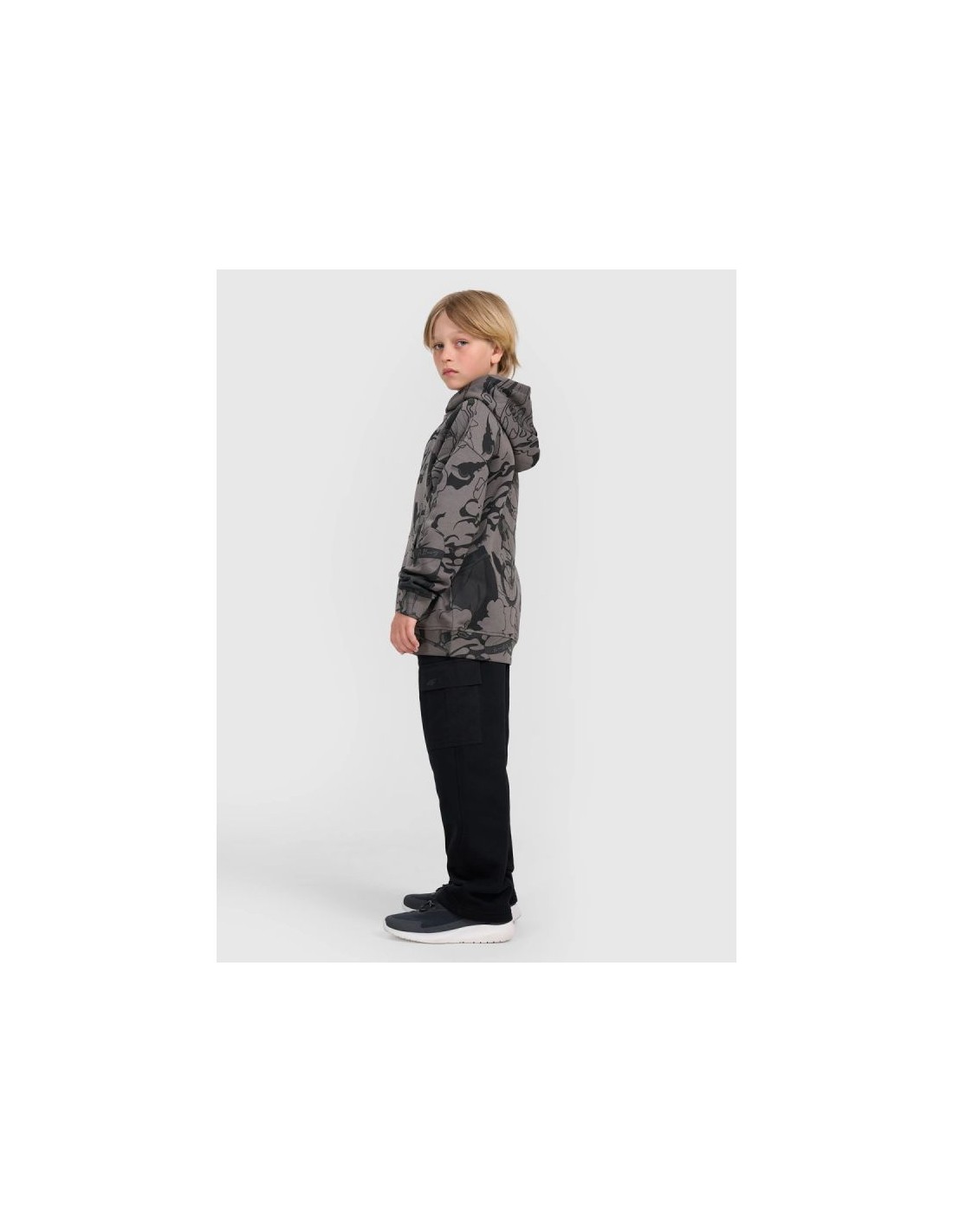 4F Boy's Hoodie - Warmth and Comfort for Everyday Wear The 4F boys' sweatshirt is a reliable choice for colder days. The thick 320 gsm fabric guarantees durability and thermal comfort, while the one-sided brushed interior creates an additional layer of warmth from the inside. The oversized cut allows for ease of movement and a comfortable fit, while the standard hip-length makes the sweatshirt perfect for everyday styling. The kangaroo pocket enhances practicality and comfort. The pullover design makes it easy to put on and take off quickly. The integrated hood protects against the cold, while elastic cuffs and hem keep the sweatshirt in place. The allover print gives it a sporty, modern feel. 4F boys hoodie – features: Weight 320 gsm – thick, warm material One-sided brushed interior – additional warming layer Oversize cut – maximum freedom of movement Standard hip length – classic cut Kangaroo pocket – a practical solution Slips on over the head – quick and easy to put on Integrated hood – effective protection against the cold Elastic cuffs – better fit to the body Allover print – sporty design Composition : 80% cotton, 20% polyester See more products from the boys' sweatshirts category.