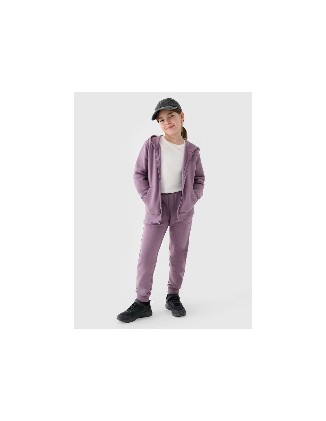 This girls' full-zip sweatshirt is made of 78% cotton, making it soft, durable, and pleasant to the touch. The addition of polyester (22%) ensures the fabric maintains its shape and is durable for many seasons. A brushed interior provides extra warmth, making it an ideal choice for cooler days. It features an integrated hood at the neckline. Elastic cuffs with drawstring. Two open pockets are located on the sides. It fastens with a one-way main zipper. A wide drawstring hem. size range: 122-164 one-sided brushed interior provides extra warmth cut: regular, which comfortably fits the figure standard cut reaching to the hips made of 78% cotton, making it soft, durable and pleasant to the touch the addition of polyester (22%) makes the material durable and resistant to wear for many seasons uniform colors that match many styles soft-touch single jersey fabric with a smooth surface neckline with integrated hood ribbed cuffs 2 open side pockets fastened with a one-way zipper bottom with drawstring Additional material: Cotton 100% Additional material 2: Cotton 95%, Elastane 5% Main material: Cotton 78%, Polyester 22%