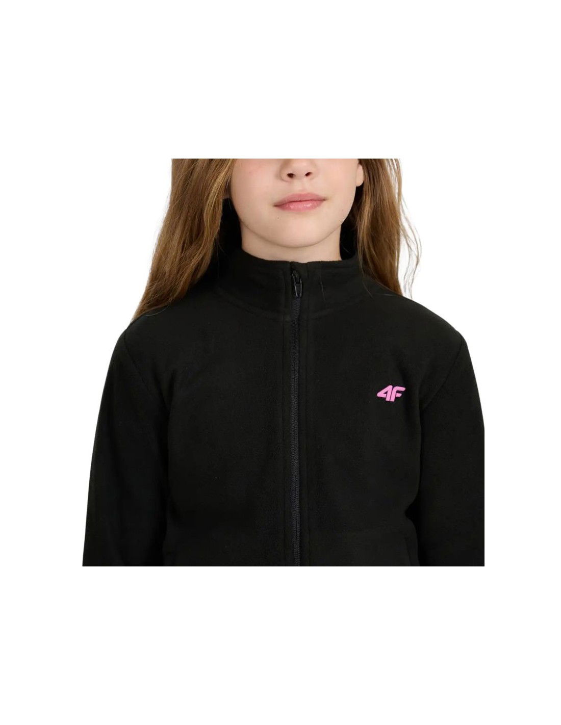 4F F346 Girls' Fleece, Deep Black, 4FJWAW25TFLEF346 20S. This fleece for girls is made of soft, comfortable fabric. The entire design is supported by 4FWarm technology, which helps maintain optimal body temperature. Two open side pockets. Full-length zipper. High collar and protective flap at the end of the zipper. Fitted cut for unrestricted movement. Material: 100% polyester.