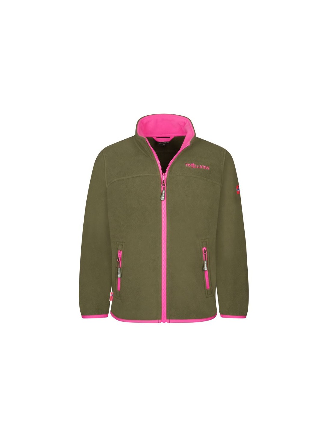 Trollkids Girls Oppdal Jacket XT sporty fleece jacket with zip green 415194