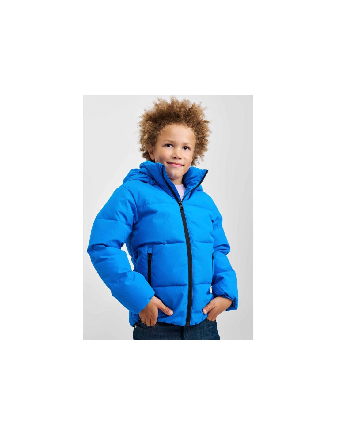 This children's winter down jacket is the perfect solution for frosty days. Bionic-Finish Eco impregnation provides protection against dirt and moisture. The detachable hood protects against wind and cold.