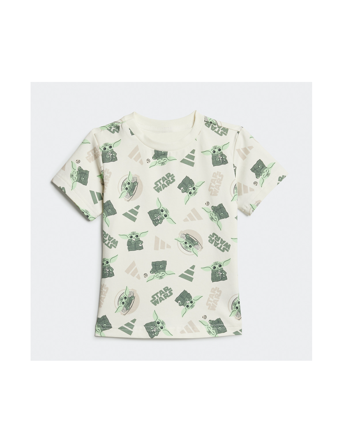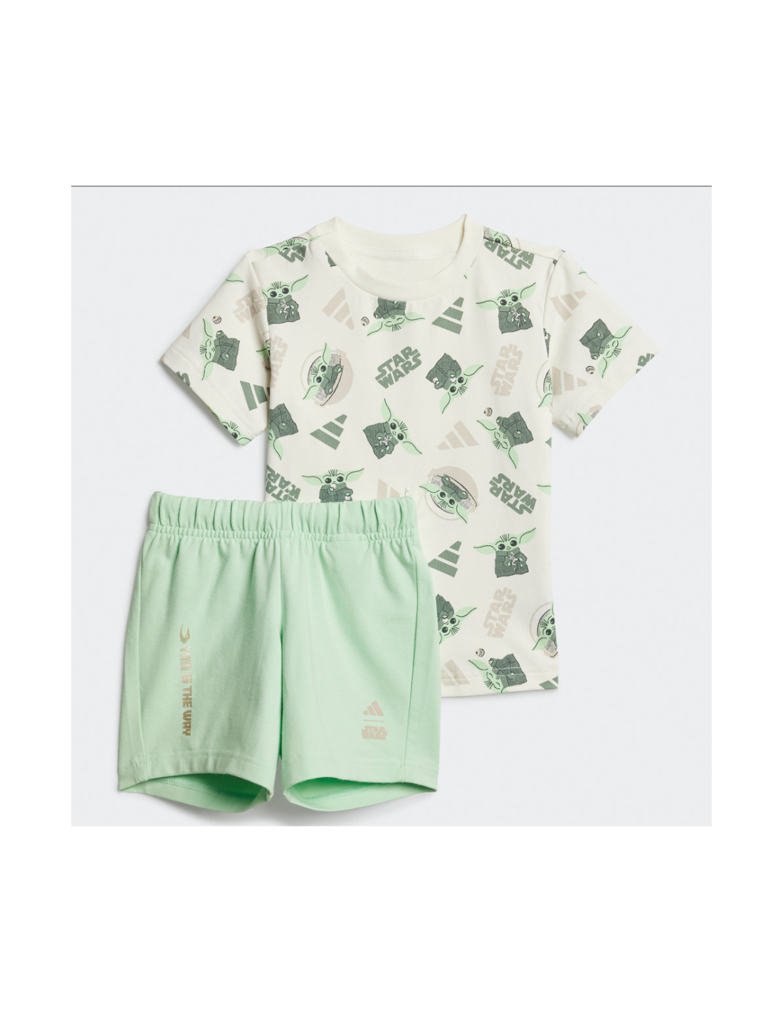 adidas Star Wars The Mandalorian Jr Pants Properties: Even the youngest Star Wars™ fans can join Grogu on his adventures in this adidas t-shirt set. An allover print adorns the tee, while a shimmering print on the shorts announces "this is the way." The open-front cotton fabric is soft and comfortable for everyday play. Regular fit for average height Crewneck (English) 93% cotton, 7% elastane Elastic waist with drawing Grogu allover print on tee Shimmer-print "THIS IS THE WAY" on the leg