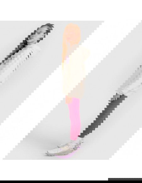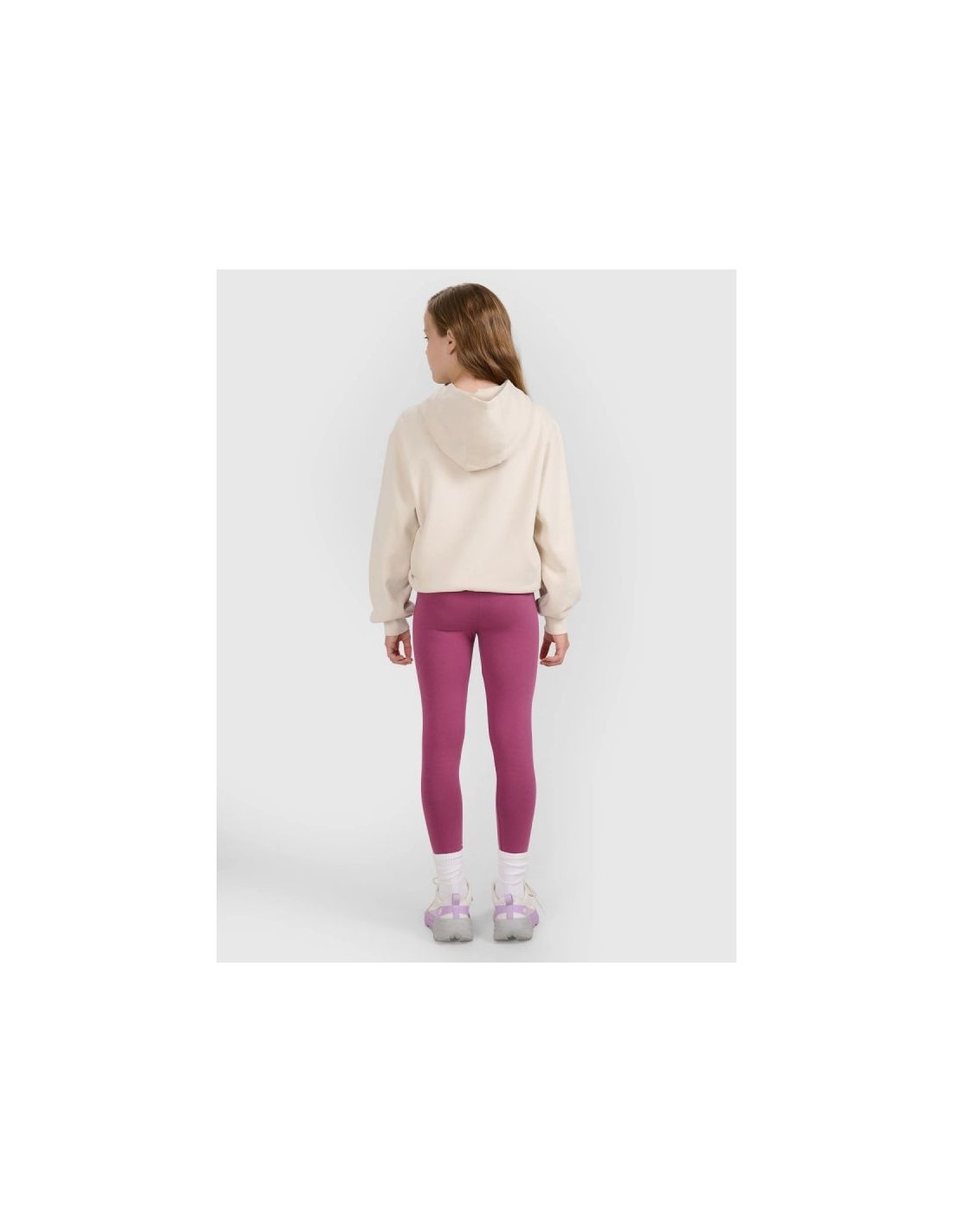 Leggings for girls – comfort and style for every day 4F girls' leggings are a classic wardrobe staple that combines comfort with a fashionable look. Their high waist ensures a stable fit and comfort, while the slim cut flatters the figure while allowing for freedom of movement. Made of cotton with added elastane , they're soft to the touch, stretchy, and comfortable against the skin. The long legs extend below the ankle, making them perfect for cooler days. The minimalist, pocketless design makes them easy to pair with a variety of outfits. CHARACTERISTICS: High waist – stable fit and comfortable wearing Size range: 122–164 Cut: slim – fitted to the body Long legs – full coverage Material: 95% cotton, 5% elastane Knitwear: single jersey – soft and smooth to the touch No pockets – minimalist form Waistband: elastic rubber for a comfortable fit Leggings for girls – perfect for everyday use and active wear Girls' knit leggings are a practical choice for school, sports, or walks. Their soft and stretchy material ensures all-day comfort.