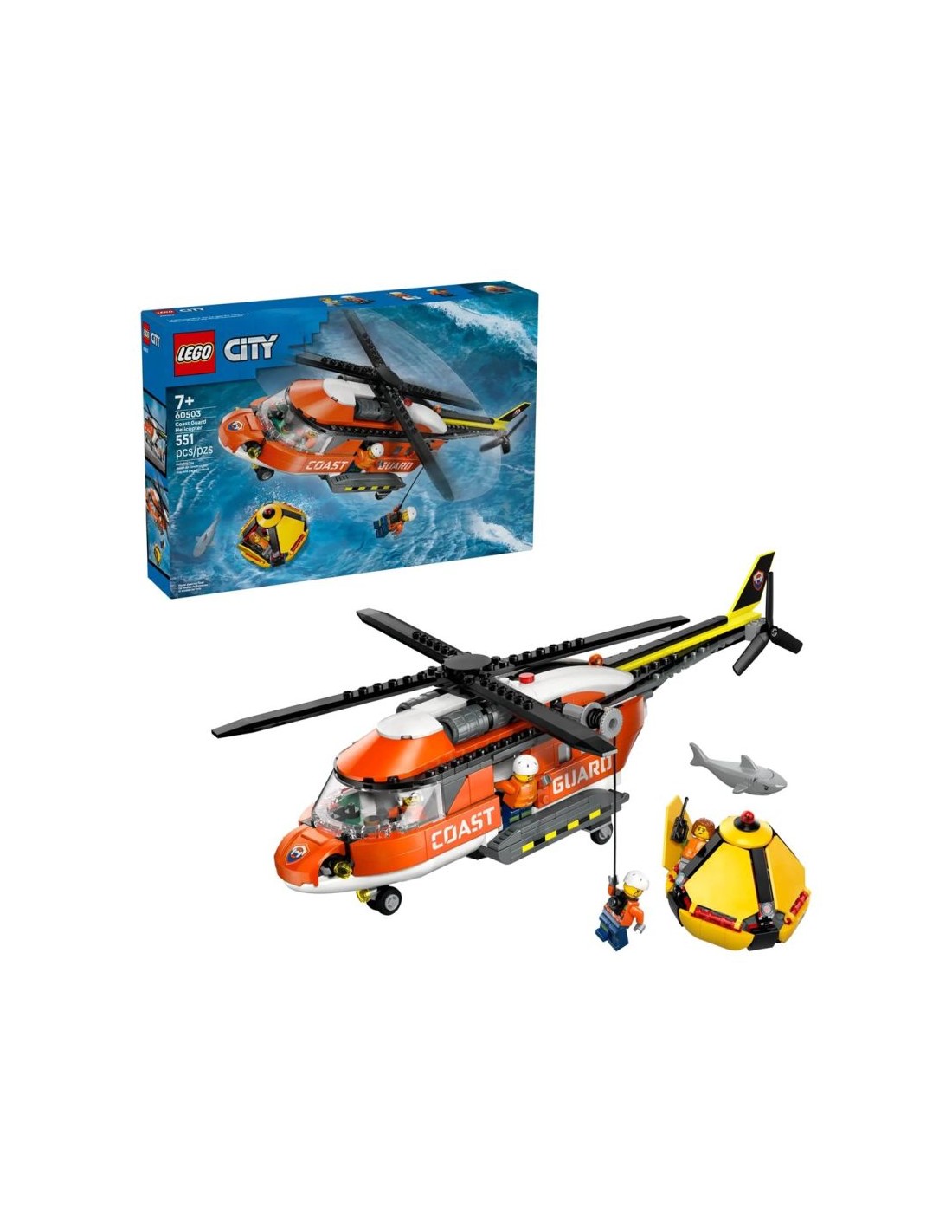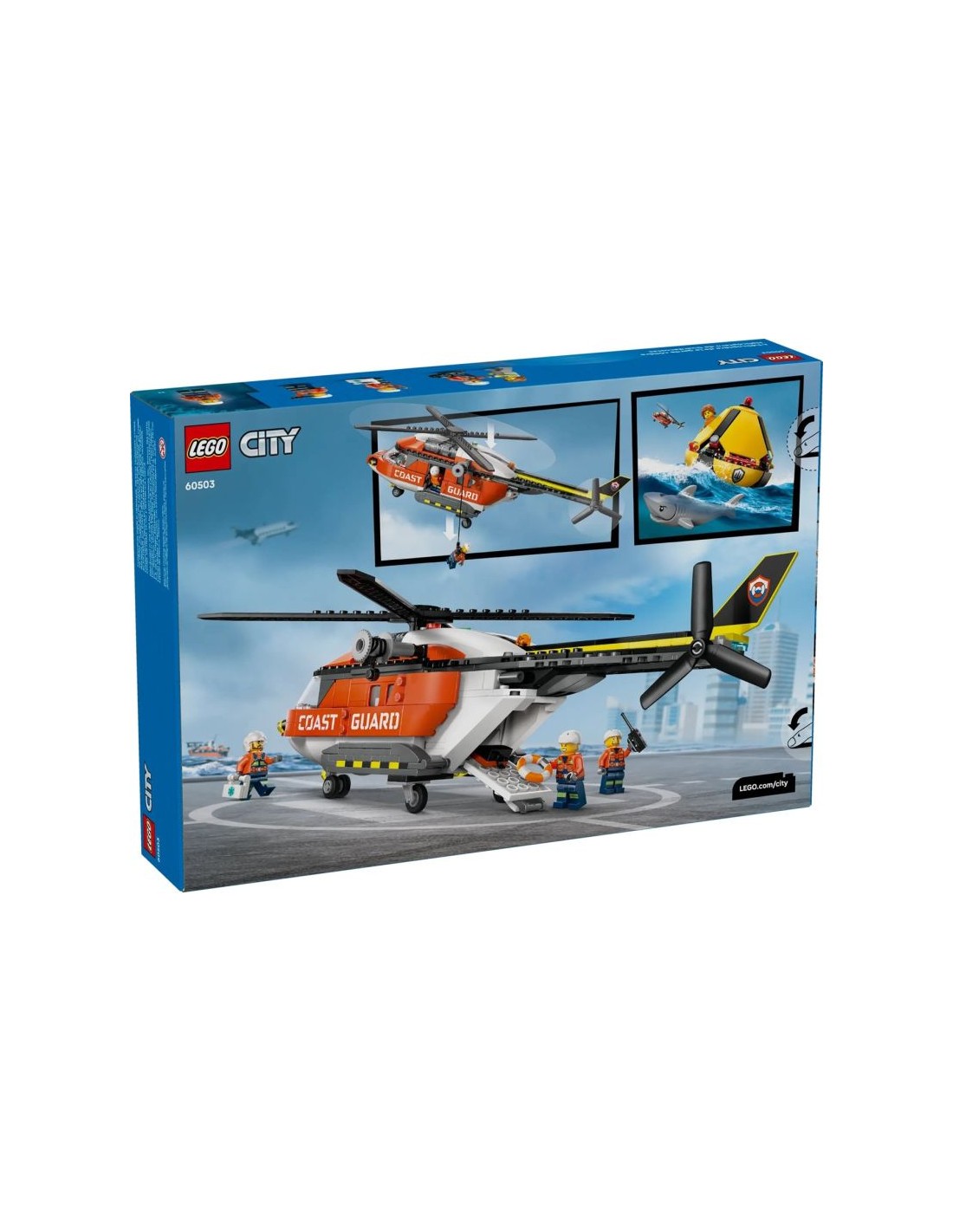 Το LEGO City 60503 Coast Guard Helicopter είναι ένα παιχνίδι κατασκευής που περιλαμβάνει ένα ελικόπτερο της ακτοφυλακής και λειτουργικά αξεσουάρ για διάσωση στη θάλασσα.