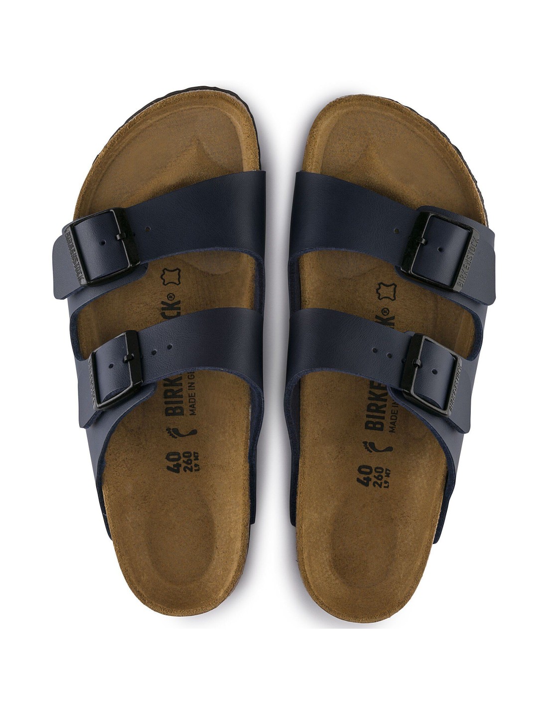 Τα Birkenstock Arizona 51751 είναι μπλε σανδάλια με δύο λουριά που κουμπώνουν στο πάνω μέρος του ποδιού. Είναι κατασκευασμένα από υψηλής ποιότητας δέρμα και διαθέτουν την πατενταρισμένη σόλα Birkenstock που προσαρμόζεται στα πόδια σας και προσφέρει την άνεση που χρειάζεστε για την καθημερινότητά σας.