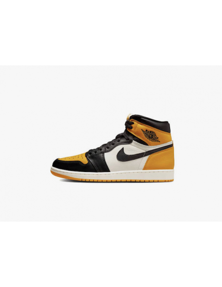 Αναλυτική περιγραφή προϊόντος: Τα Jordan 1 Retro High OG Taxi είναι ένα εικονικό ζευγάρι αθλητικών παπουτσιών που έρχεται σε ένα μοναδικό χρωματικό συνδυασμό με κύριο χρώμα το λευκό και λεπτομέρειες σε μαύρο και κίτρινο. Το σχέδιο τους είναι εμπνευσμένο από την ταξιδιωτική θεματολογία, με έντονες γραμμές και λεπτομέρειες που τους κάνουν να ξεχωρίζουν.
