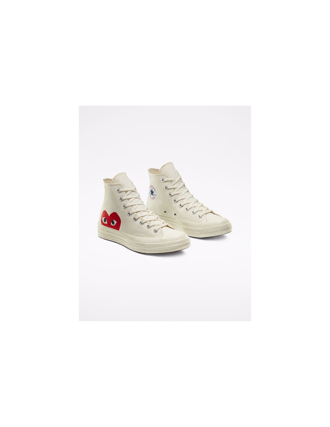 Τα Converse CT70 Hi CDG Play σε λευκό χρώμα είναι μια μοναδική συλλογή συνεργασίας μεταξύ της Converse και του label Comme des Garçons Play. Αυτά τα υψηλά sneakers συνδυάζουν το κλασικό σχέδιο της Converse με το παιχνιδιάρικο στυλ του Comme des Garçons Play, δημιουργώντας ένα μοντέρνο και εντυπωσιακό αποτέλεσμα.