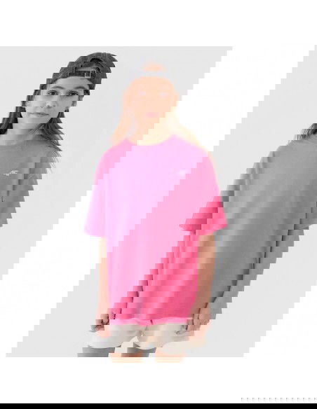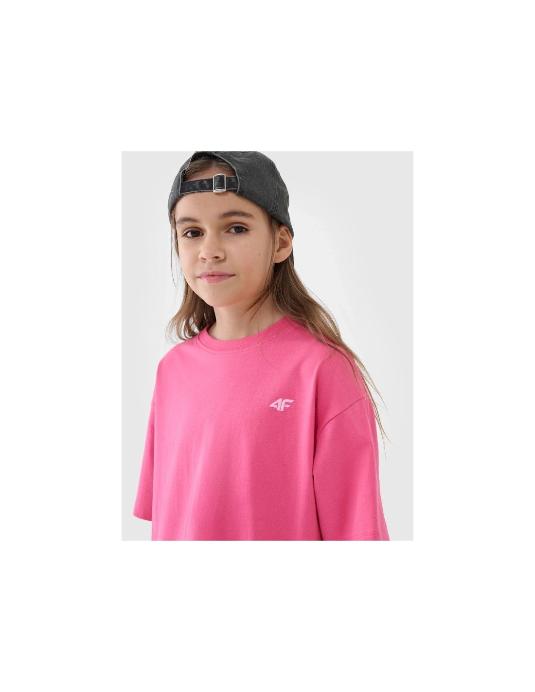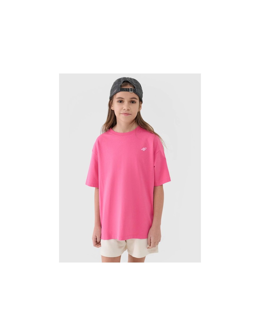 The 4F girls' T-shirt is a perfect choice for everyday styling , combining comfort and a fashionable look . Thanks to its oversized cut and stretchy materials, the T-shirt allows for complete freedom of movement in both casual and sporty styles. Product Features: Oversize Cut : A loose, oversize cut that fits comfortably on the body ensures comfort and freedom all day long. Soft Knit : Made of 100% cotton , the T-shirt is soft , durable and pleasant to the touch , guaranteeing everyday comfort. Smooth Structure : Single jersey weave with a smooth surface on one side makes the material flexible and comfortable to wear. Round Neckline : Round neckline with light ribbed detailing for durability and comfort . Universal Colors : The solid-colored T-shirt goes well with many styles, both everyday and sports. Choose comfort and relaxation with a 4F T-shirt – the perfect choice for an active day