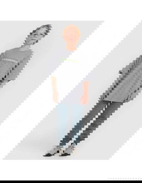 4F Boys' T-shirt - Light, airy and stylish The 4F boys' printed T-shirt is a perfect choice for young lovers of comfort and style. With its relaxed, oversized fit and soft cotton jersey, it's comfortable to wear all day long—both at school and at play. Key features 180 gsm weight – lightweight material ideal for warmer days and everyday use. Oversize cut - fits loosely on the body, ensuring freedom of movement. 100% cotton – natural fabric, soft, durable and pleasant to the touch. Single jersey fabric – smooth and flexible structure ensuring high wearing comfort. Round neckline – finished with a light rib that retains its shape after washing. Print on the front and back – a distinctive visual element that gives character and highlights the style of the product. Uniform colors - suits many styles and makes it easier to compose everyday sets. Comfort and style every day With a weight of 180 gsm, the T-shirt is lightweight, soft, and opaque. It perfectly combines durability with comfort, perfect for both casual outfits and active wear. The 4F T-shirt combines functionality, simplicity, and a youthful character.