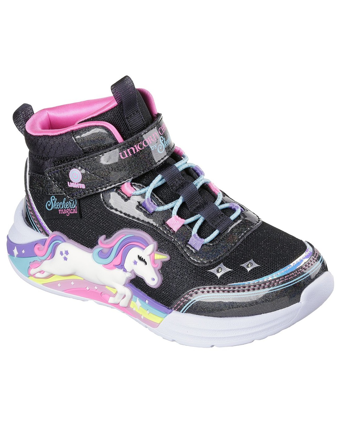 Unleash the magic with the Skechers SLights Unicorn Chaser Jumping Magic 303302LBKMT sneakers! These adorable shoes feature a unicorn design that lights up with every step, making them not only stylish but also fun for little ones. The comfortable fit and easy-to-use design make them perfect for everyday wear.