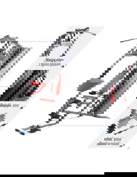 Titan 7 allows you to safely exercise different muscle groups - just like in a professional gym. Braided steel cable guarantees durability up to 1000kg, while the lower rod can be used as a neck or rowing machine. It is an ideal solution for women or men who want to improve their condition and figure, increase and strengthen muscle mass.