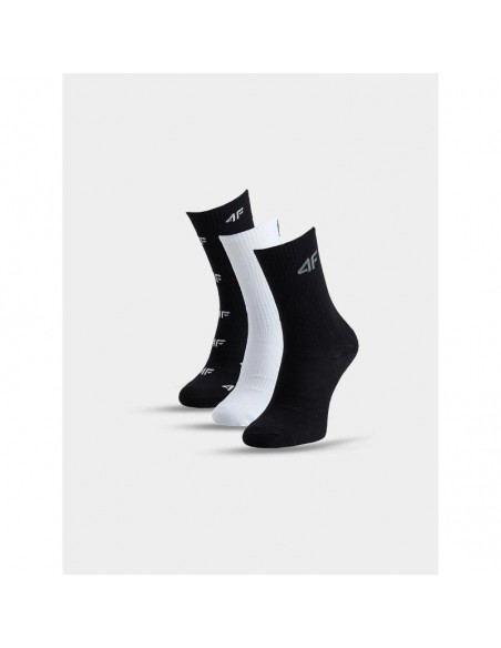 Boys' 4F socks - set of 3 pairs 4F boys' socks are a practical choice for everyday wear. Thanks to their soft and flexible fibers, they conform to the shape of your foot, ensuring comfort and convenience during everyday activities. Comfort and fit This mid-calf length sock is made of 62% cotton , ensuring softness and durability. A 34% polyamide addition makes the socks stretch and wrinkle-resistant, while the elastic fibers ensure a perfect fit. Practical set The set includes three pairs of socks , which, thanks to their uniform colors, are easy to match with various outfits. A subtle 4F logo on the cuff emphasizes the sporty character. Detailed product features: Size range: 32–40 – fits a variety of feet length: mid-calf material: 62% cotton, 34% polyamide, 4% elastane soft, durable and flexible fibers a drawstring that keeps the sock in place 4F logo on the cuff 3 pairs in a set – a practical and economical solution