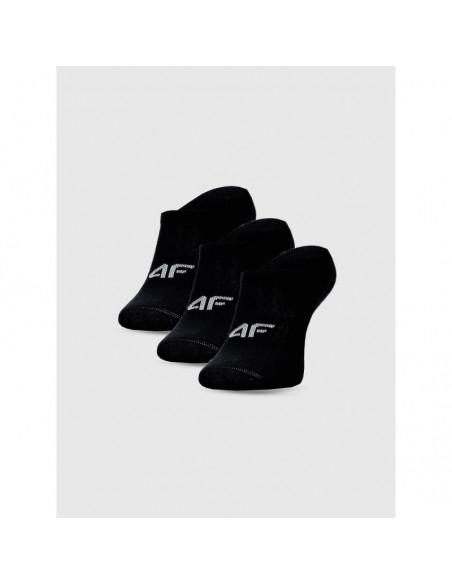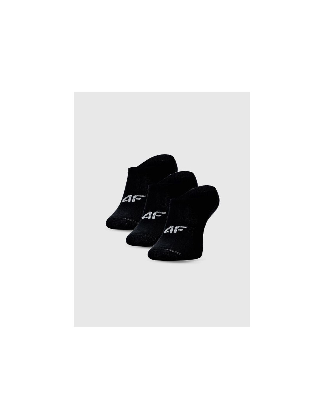 Boys' ankle socks 4F - 3 pairs Boys' ankle socks are the perfect choice for everyday wear—school, the playground, or an active afternoon. Made of soft and flexible fibers, they conform to the shape of the foot, ensuring comfort and freedom of movement. The design hits below the ankle, making it perfect for pairing with low-cut footwear like sneakers, trainers, or athletic shoes. The seamless construction minimizes the risk of chafing, while strategically placed, pressure-free cuffs keep the sock in place all day long. Made of 70% cotton, they are soft, durable, and pleasant to the touch. The addition of polyamide (27%) improves stretch and wrinkle resistance, while elastane ensures a perfect fit. The 4F logo on the midfoot emphasizes the sporty character. The multipack contains 3 pairs of socks that will work with any everyday outfit. Boys' ankle socks 4F - product features Size range: 32–40 – fits children and teenagers Short, no-show cut – invisible in footwear 70% cotton – softness, breathability and comfort of wearing 27% polyamide – greater durability and tensile strength Uniform colors – universal design 4F logo on the midfoot – a subtle, sporty accent Multipack: 3 pairs – a practical solution for everyday use Seamless construction – minimizes the risk of abrasions Flexible material – adapts to the foot and does not restrict movement Pressure-free and strategically placed cuffs – stability and comfort