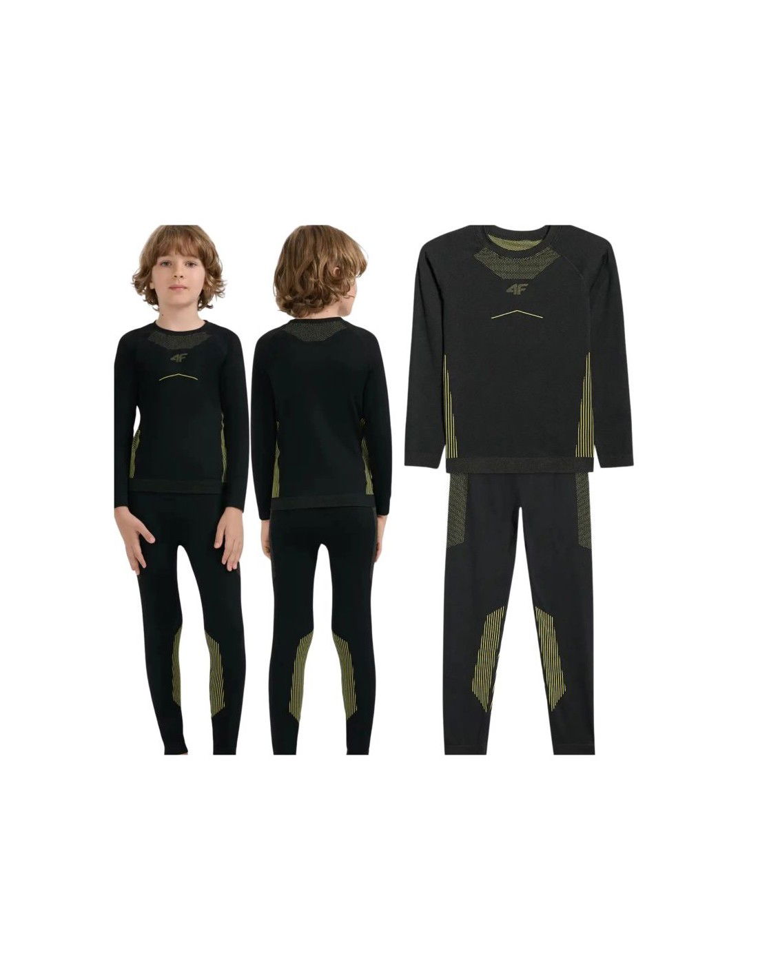 Boys' seamless underwear 4F - comfort and protection in every activity 4F seamless underwear for boys is the perfect choice for cooler days and physical activity. Thanks to 4F Skin technology, this set provides complete freedom of movement, comfort, and effective thermal protection. ?? Key features: Elastic knit fabric – perfect fit to the body. 4F Skin technology – comfortable wearing without irritation. Seamless construction – no pressure or chafing. Thermoactive – maintains optimal body temperature. Quick-drying finish – moisture wicking and freshness. Raglan sleeves – complete freedom of movement. 2-piece set – longsleeve and leggings. Take care of your child's comfort with seamless 4F thermal underwear , perfect for everyday use and sports activities.