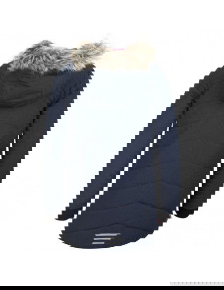 - The fur-trimmed hood protects against the cold, while reflective elements increase safety.