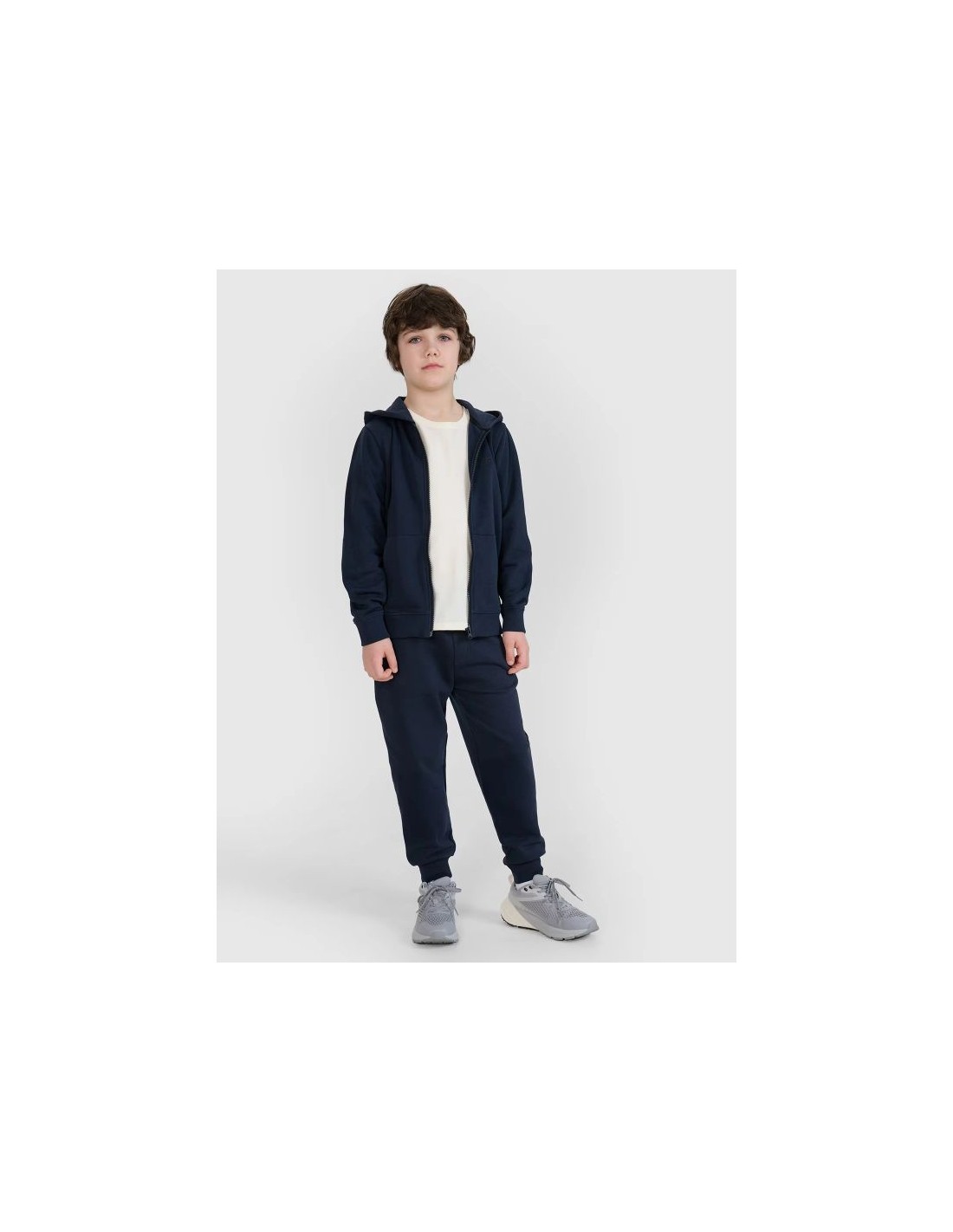 Boys' 4F zip-up hoodie - everyday comfort and style Looking for a practical and comfortable sweatshirt for your boy? The 4F Boys' Hooded Sweatshirt is the perfect everyday choice – perfect for both sporty and casual outfits . Made of high-quality 240 gsm single jersey fabric, this sweatshirt provides optimal warmth and breathability . The brushed interior enhances thermal comfort, making it ideal for cooler days. The regular fit guarantees freedom of movement, while the soft and stretchy fabric adapts to the body. Thanks to the use of 80% cotton and 20% polyester , the material is pleasant to the touch, durable, and maintains its shape even after numerous washes. Product features: Boy's hooded sweatshirt with zipper Weight: 240 gsm Material: 80% cotton, 20% polyester Soft single jersey fabric Brushed interior – extra warmth Regular fit – comfortable fit One-way lock 2 side pockets Ribbed cuffs at the bottom and sleeves Available sizes: 122–164 This versatile sweatshirt is perfect for boys who value comfort and functionality. It's perfect for school, walks, and everyday activities.