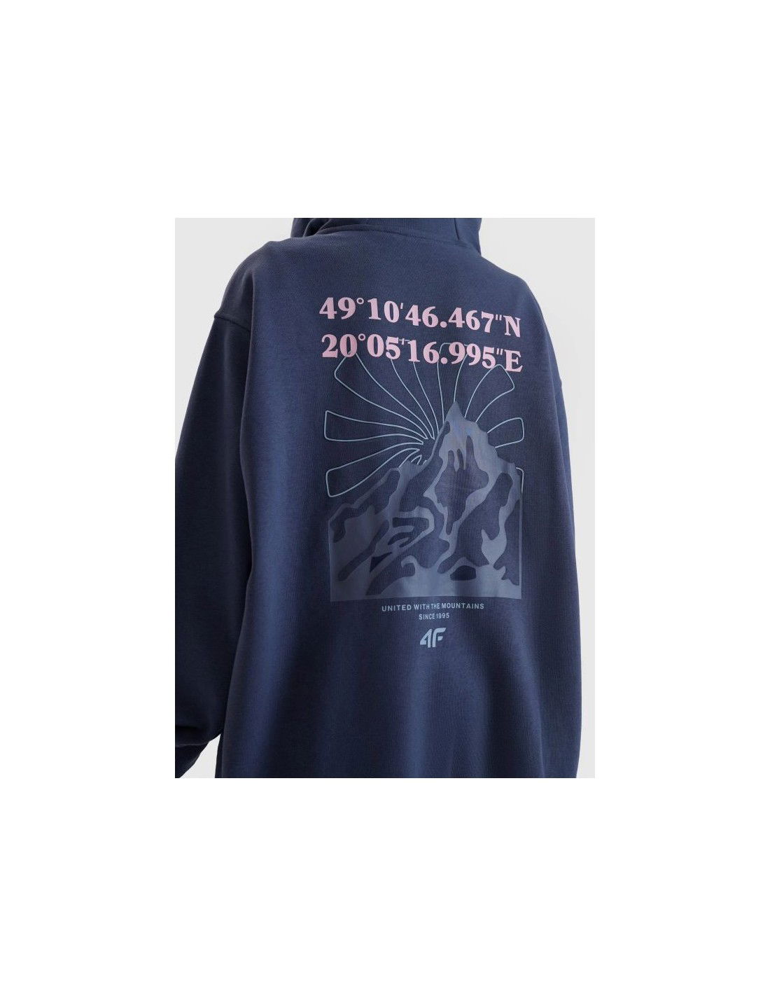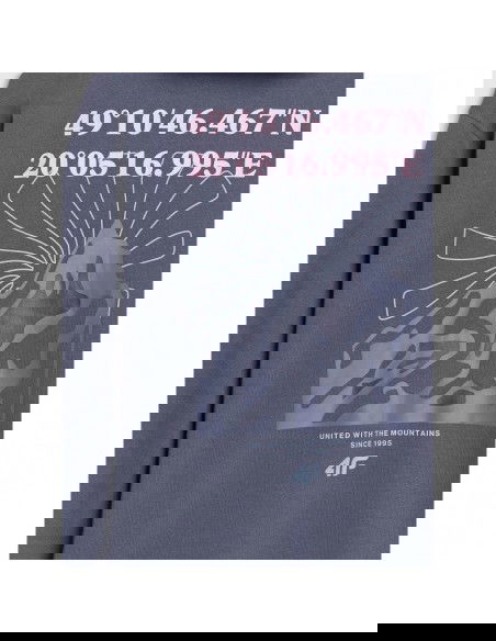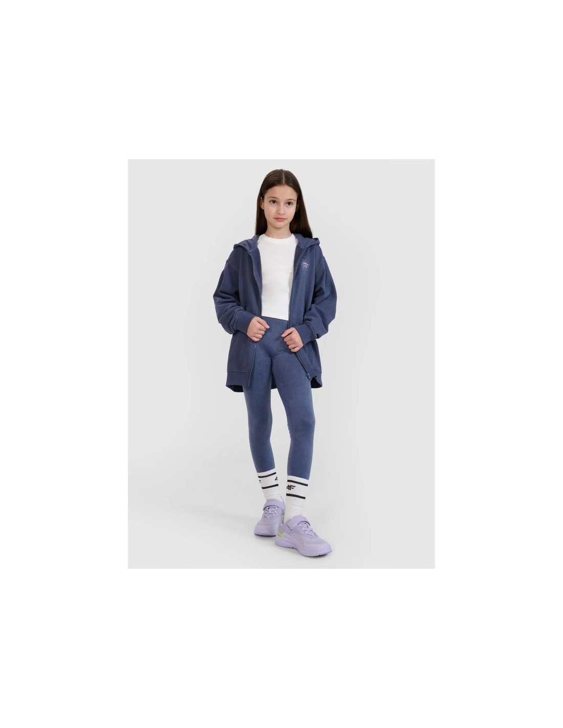Girls' sweatshirt with a hood 4F - comfort and style for everyday wear The 4F girls' zip-up hooded sweatshirt is a practical everyday choice, perfect for both casual and sporty outfits . Thanks to its regular cut , the sweatshirt comfortably fits a child's figure, ensuring freedom of movement and comfort. Made of French terry sweatshirt fabric , which is smooth on the outside and looped on the inside, it guarantees adequate breathability and softness . The 300 gsm weight ensures durability without sacrificing lightness and flexibility . The most important features of a sweatshirt for girls : Weight : 300 gsm – perfect for the transitional season Sizes : 122–164 – fits various body shapes Material : 80% cotton – softness , durability , pleasant to wear Addition of polyester (20%) – ensures resistance to wear and maintains shape French terry knit fabric – smooth on the outside, looped on the inside Regular fit – classic fit and comfort Integrated hood – additional protection on colder days One-way zipper – easy and quick to put on Elastic cuffs and hem with drawstring for a better fit 2 open side pockets – space for small items Decorative prints – a delicate print on the chest and a fashionable coordinate print on the back No lining – greater lightness and airiness Why is it worth choosing a 4F hoodie for girls ? Functional and fashionable – perfect for school, walks and physical activity High-quality materials – for use for many seasons Classic design with modern details – fits many styles Suitable for the transitional season and summer evenings