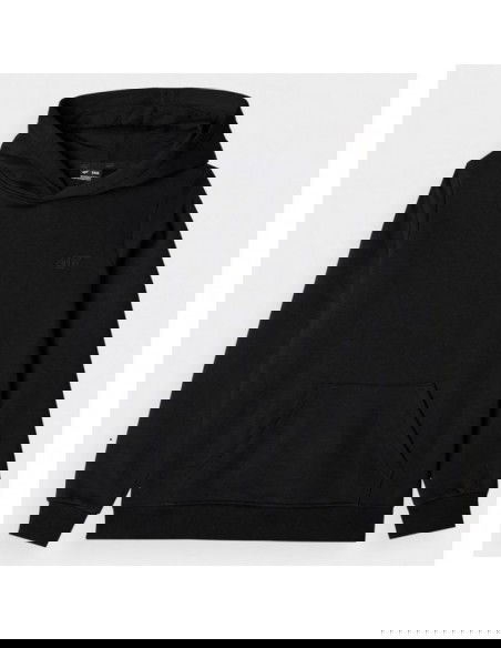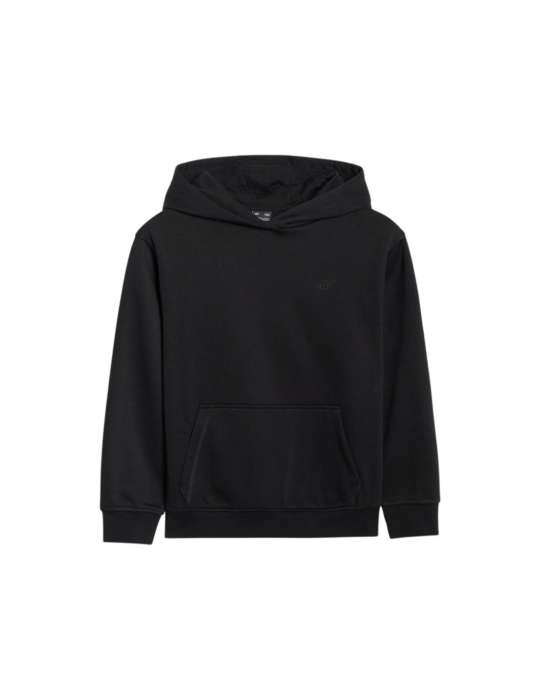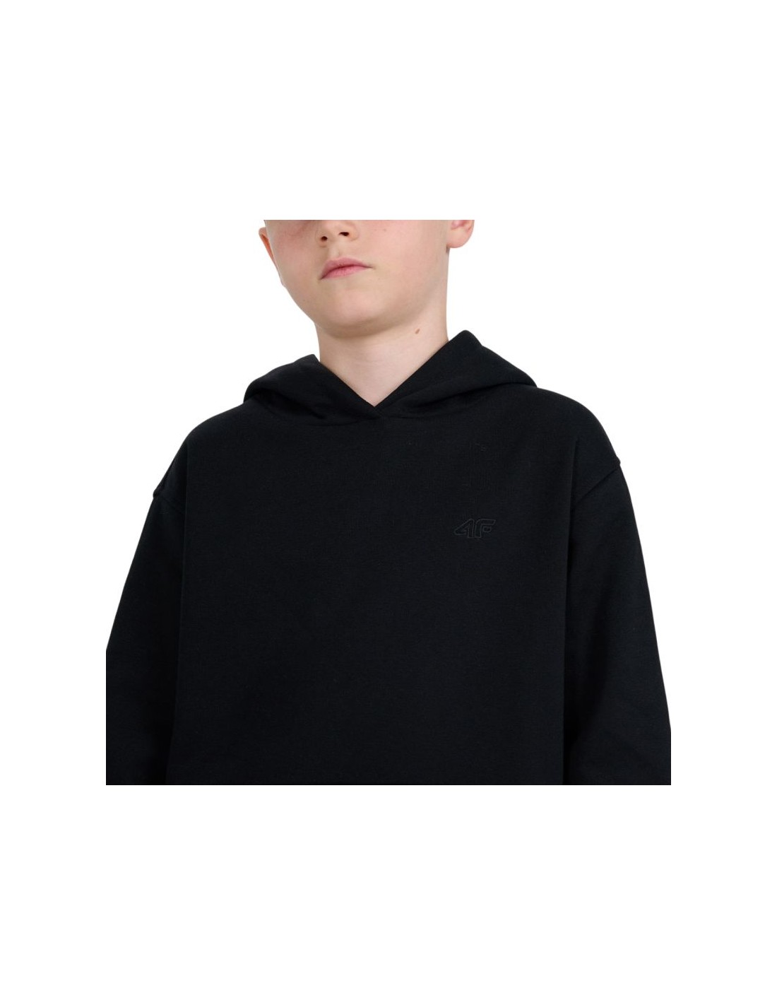 4F Jr. sweatshirt 4FJWMM00TSWSM1860 Properties: Boy's sweatshirt 4F M1860 deep black 4FJWMM00TSWSM1860 20S Boy's sweatshirt 4F is perfect for everyday wear. Technical data: Main material: 80% cotton, 20% polyester Additional material: 100% cotton Additional material 2: 95% cotton, 5% elastane One-sided brushed interior - provides additional warmth and thermal comfort Oversize cut - loosely fits the body, offering great freedom of movement Hip-length for everyday comfort Natural softness and durability of cotton material Addition of polyester - increases resistance to wear and extends the product's lifespan Solid colors - a universal base for various styles Single jersey knit - smooth and soft to the touch Hooded neckline - integrated hood provides additional coverage Ribbed cuffs - better fit and protection against cold Kangaroo pocket on the front - a practical place for small items and warming your hands Pulls on over the head - quick and easy to put on Bottom with a ribbed cuff - stabilizes the sweatshirt and improves the fit
