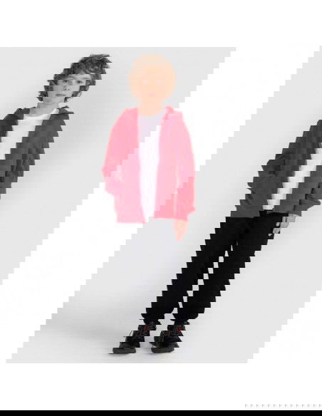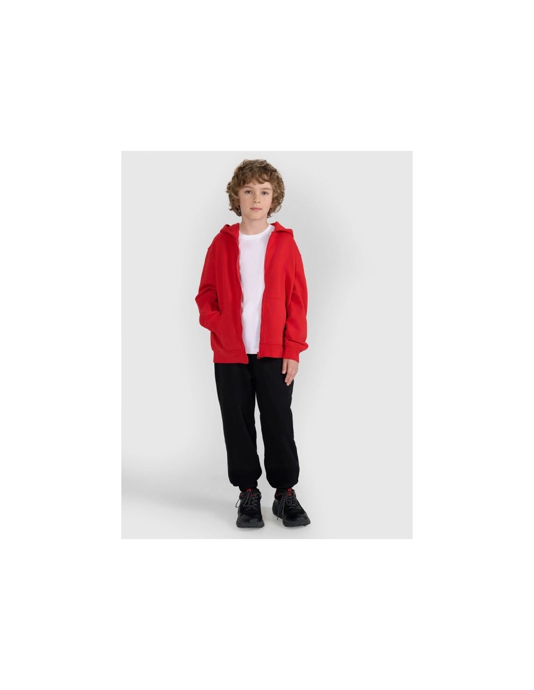 Zip-up hoodie - boyish comfort in a sporty style This hooded sweatshirt is designed for active boys who value comfort, freedom of movement, and practicality. Perfect for school, training, and everyday wear, it combines a sporty design with functional details. CHARACTERISTICS: Cut – regular, ensures freedom of movement and comfortable use. Intended use – everyday use: for school, sports activities and free time. Technology – classic sweatshirt material ensuring thermal comfort and softness to the touch. Hydrophobic coating – no special coating; construction typical of sweatshirts. Functional details – zipper, hood, side pockets, ribbed cuffs and hem for a better fit. Composition – mainly polyester (exact composition depends on the product variant). Weight – medium thickness of the material, typical for sweatshirts, ensuring comfort in everyday use. This sweatshirt works great as a standalone piece or as a layering piece on cooler days. Pair it with joggers or jeans for a comfortable, sporty look. Check also: sweatshirts for boys , pants for boys