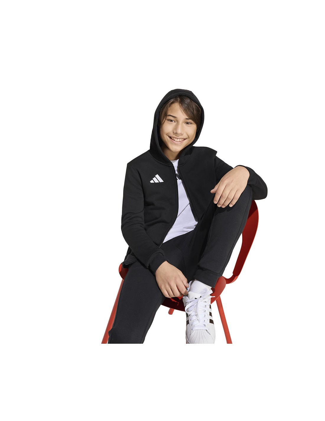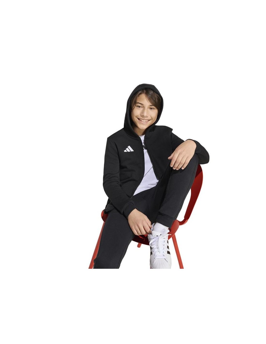 The Adidas ENTRADA 26 Hoody Full Zip Junior sweatshirt is a must-have for any young athlete or casual wearer. This stylish hoodie offers both comfort and performance, making it perfect for everyday wear or sports activities. The full zip design allows for easy on and off, while the hood provides added warmth and coverage. The classic Adidas logo on the chest adds a touch of sporty style.