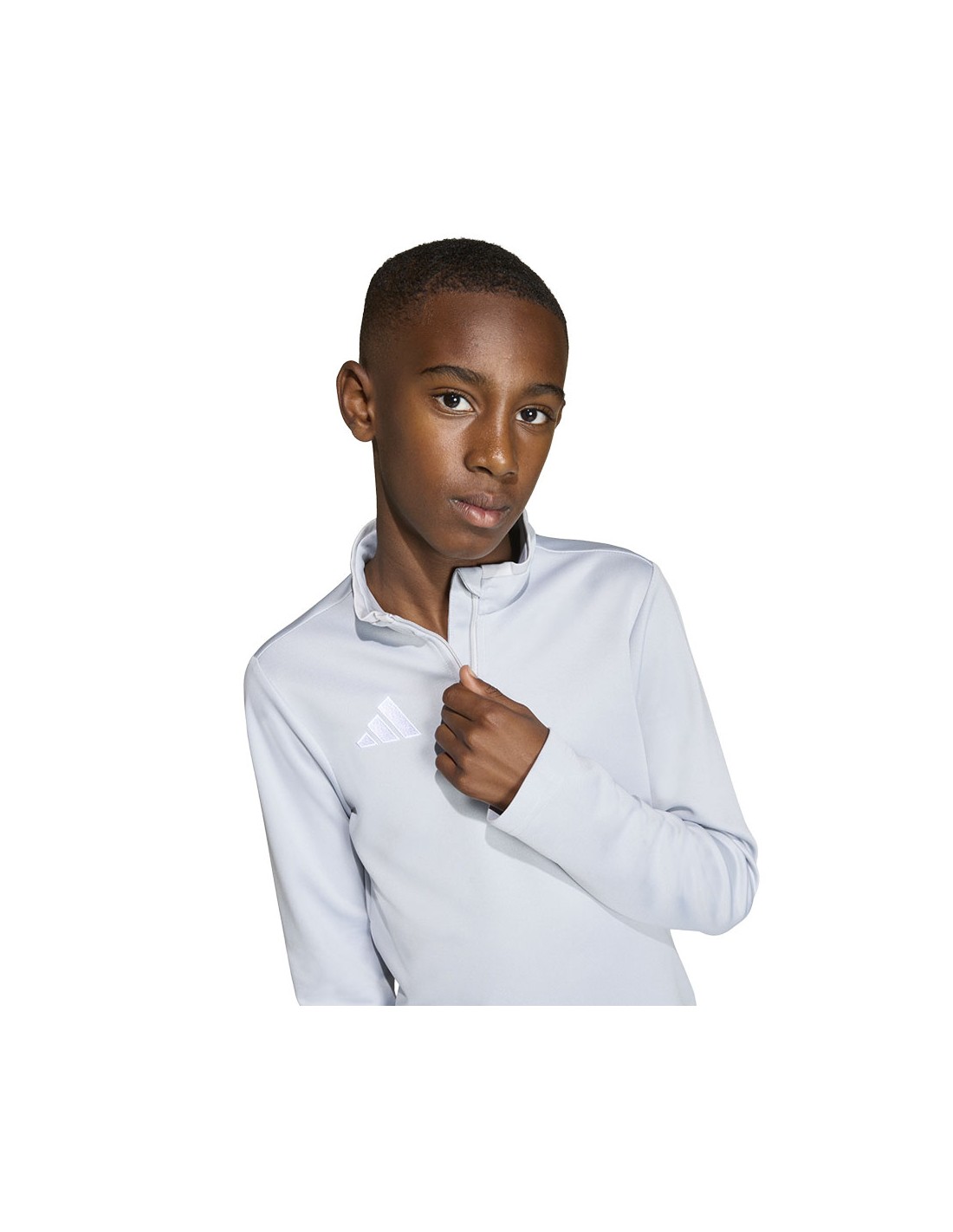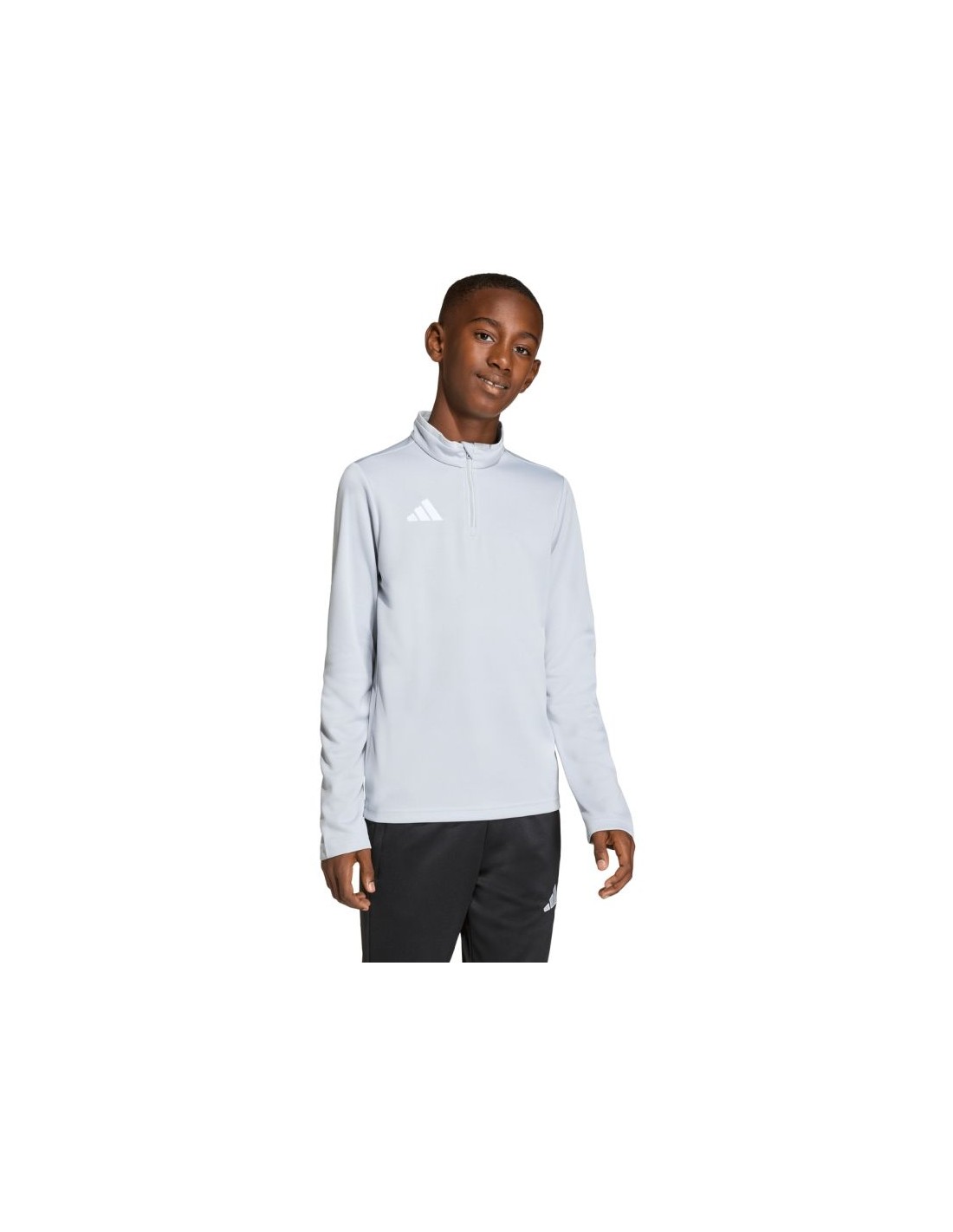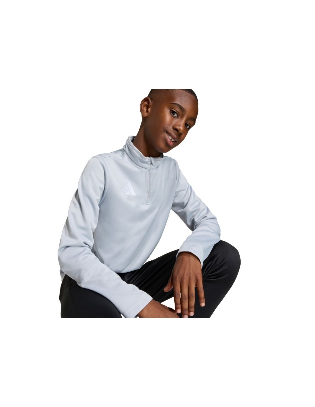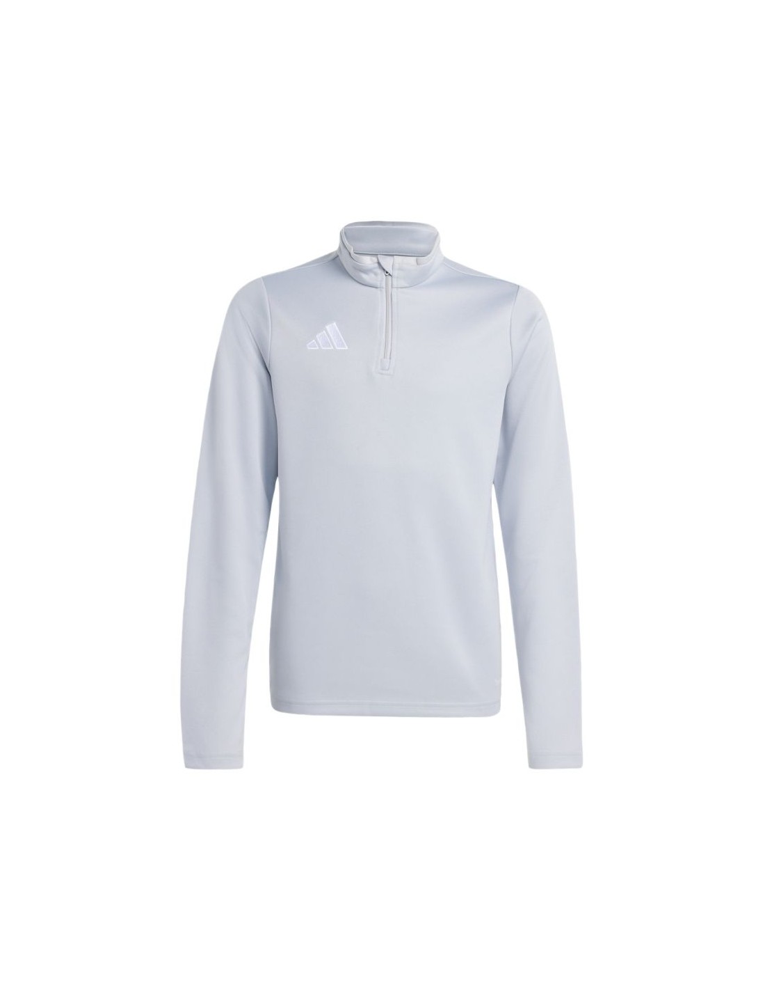 adidas Entrada 26 Training Top Light Gray JZ6637 Kids' Sweatshirt. This adidas sweatshirt is perfect for training. It has a fitted cut. Elastic cuffs. A small, embroidered adidas logo. A 1/4-length zipper. Climacool technology keeps you cool and dry by effectively wicking away sweat. This style is from the Entrada collection. Material: 100% recycled polyester.