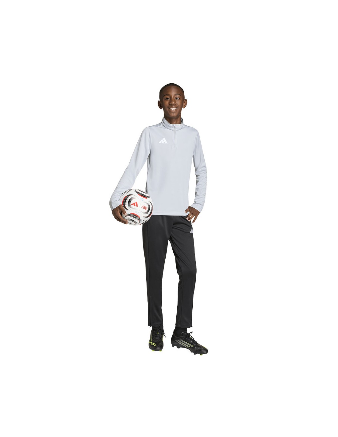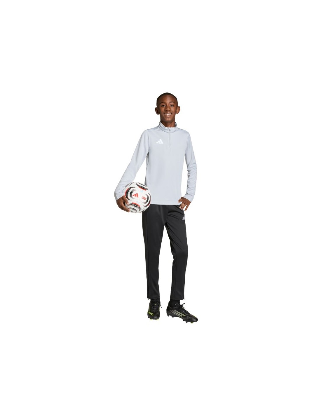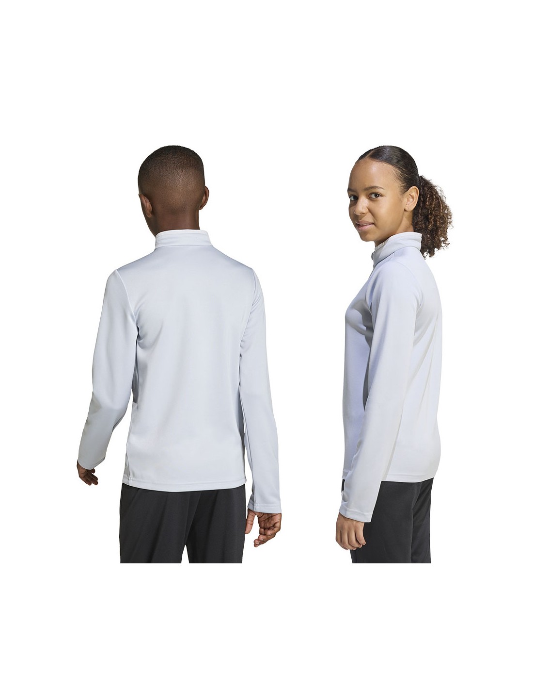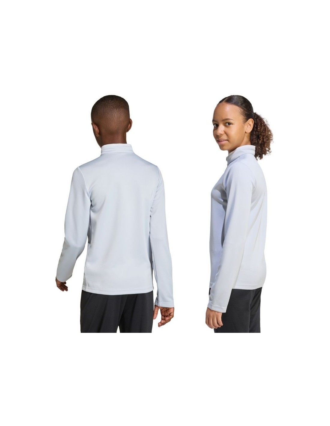 adidas Entrada 26 Training Top Light Gray JZ6637 Kids' Sweatshirt. This adidas sweatshirt is perfect for training. It has a fitted cut. Elastic cuffs. A small, embroidered adidas logo. A 1/4-length zipper. Climacool technology keeps you cool and dry by effectively wicking away sweat. This style is from the Entrada collection. Material: 100% recycled polyester.