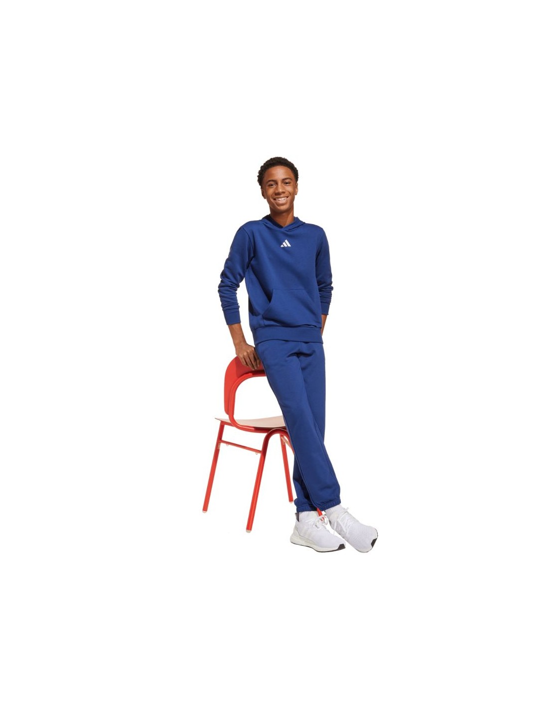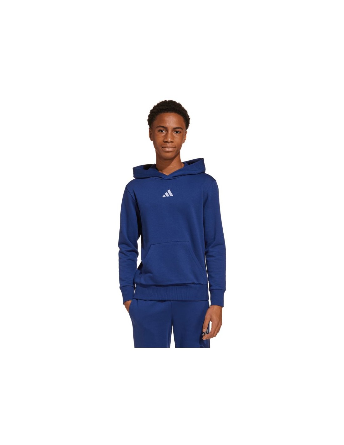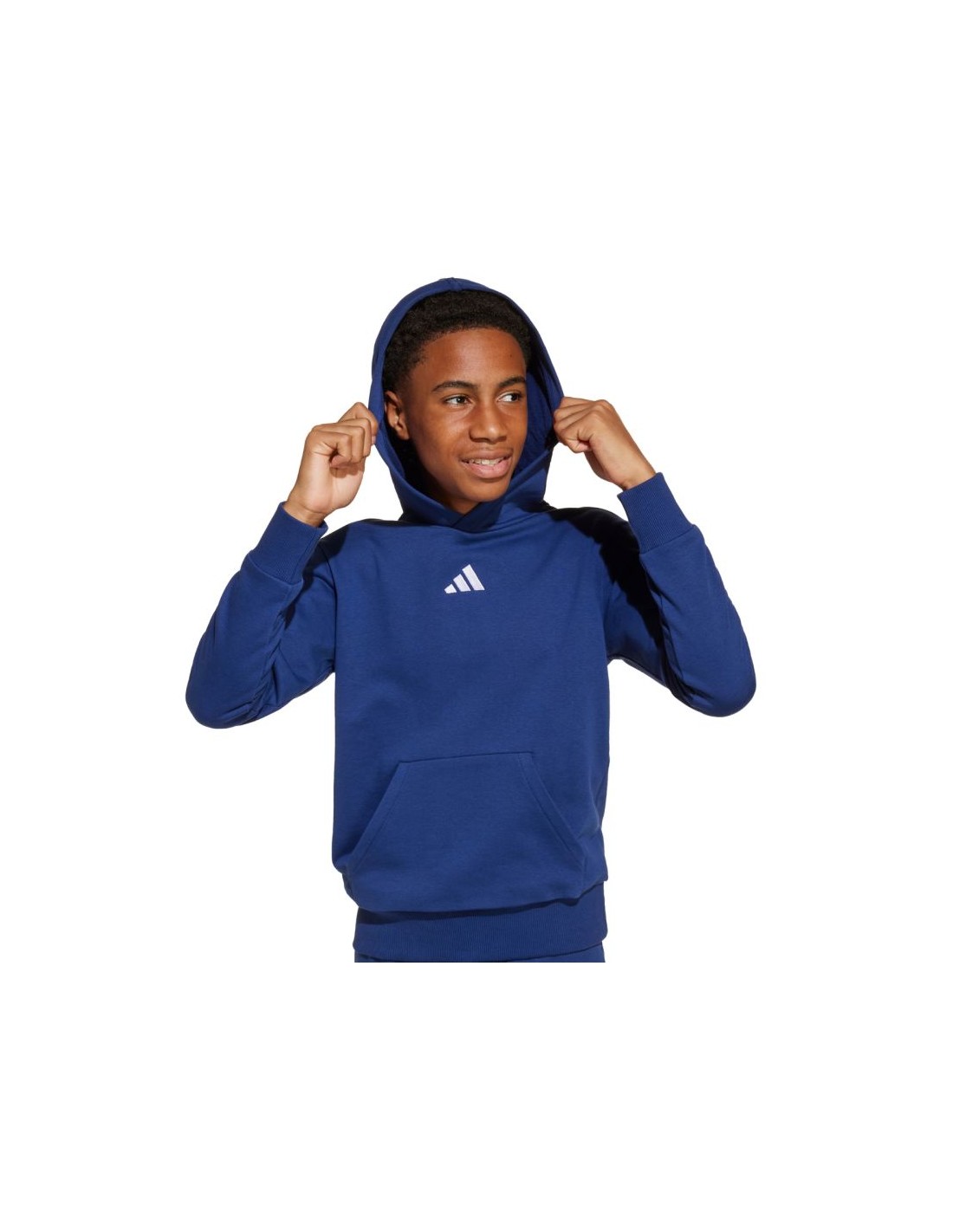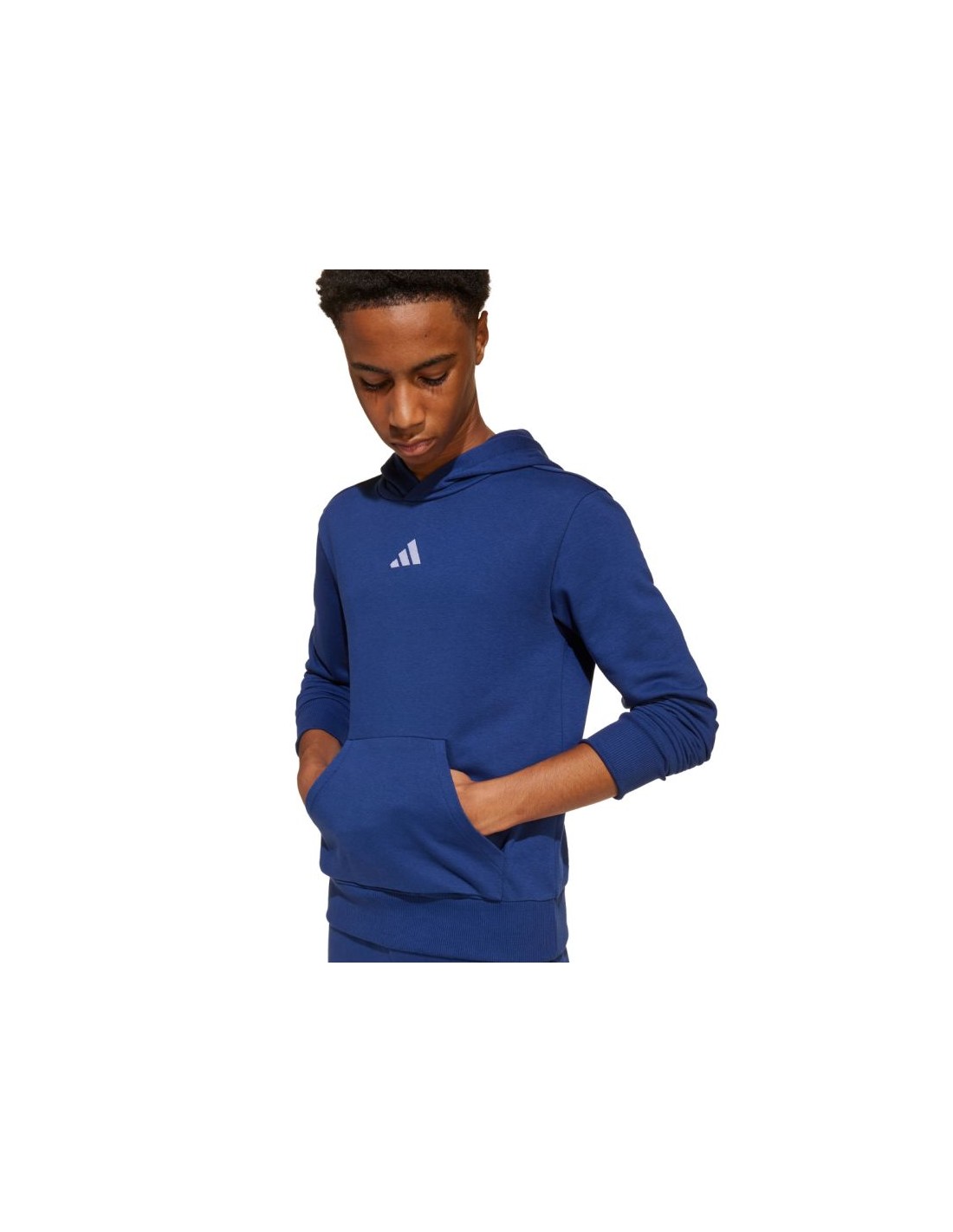 adidas Essentials Navy Blue Kids' Sweatshirt JY0612 This adidas sweatshirt is designed with your child's comfort in mind. Standard fit. Cotton jersey is soft to the touch. Synthetic fibers enhance durability. Lightweight insulation. Ribbed cuffs and hem. Fixed hood. Material: 71% cotton, 29% recycled polyester