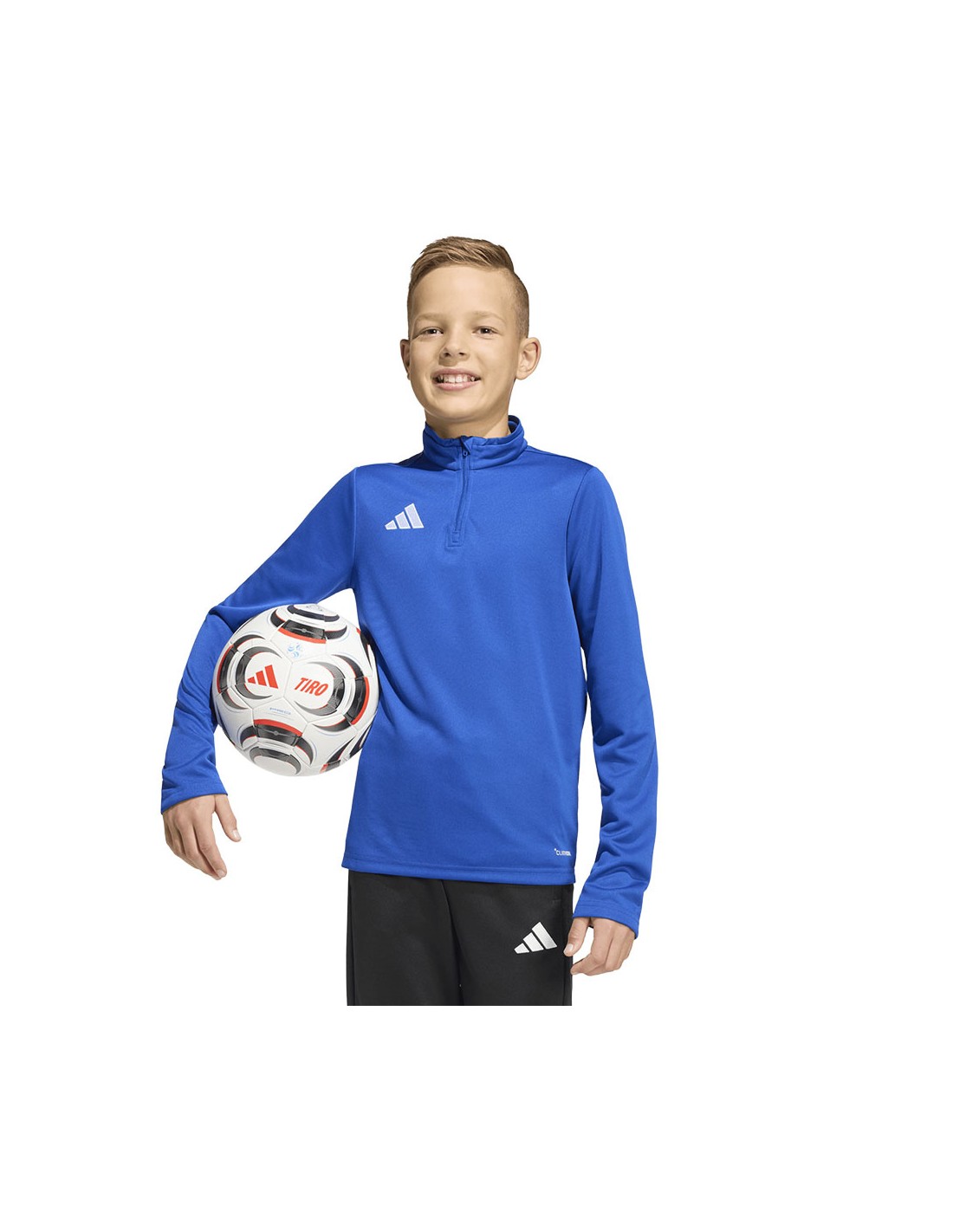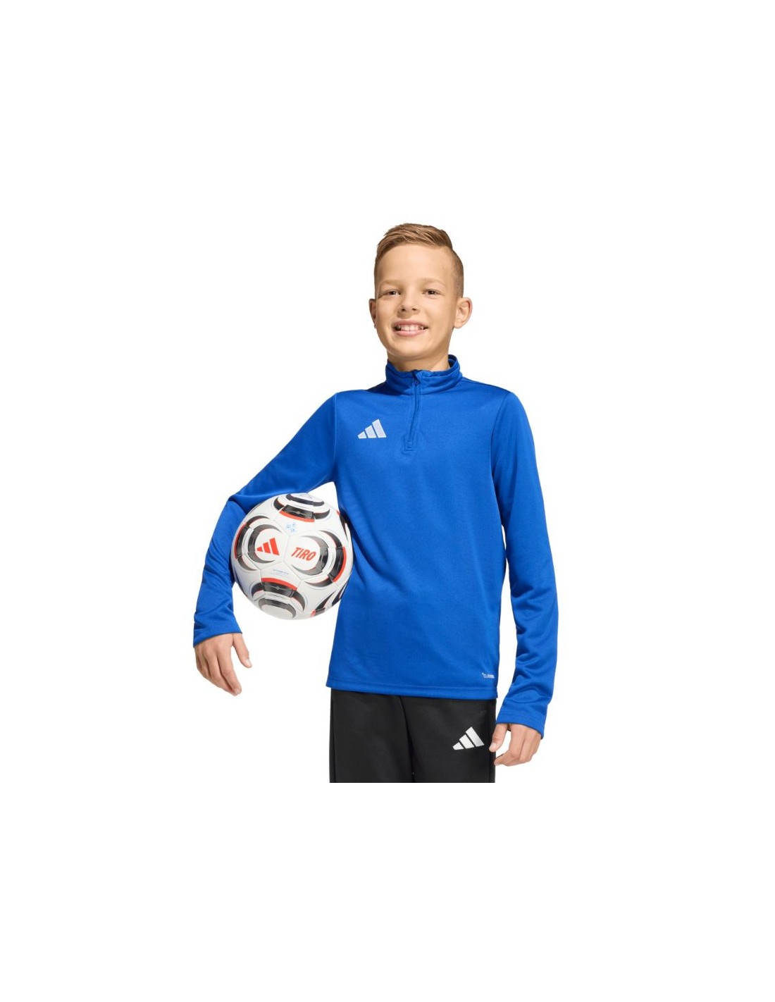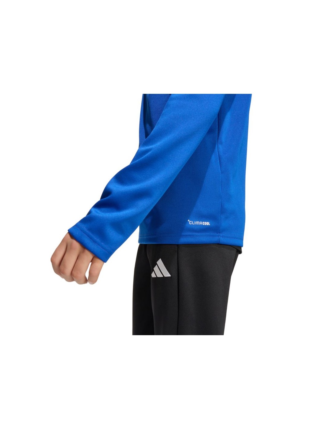 adidas Entrada 26 Training Top for Kids, Blue JZ6631. This adidas sweatshirt is perfect for training. It has a fitted cut, elastic cuffs, and a small, embroidered adidas logo. It has a 1/4-length zipper. Climacool technology helps keep you cool and dry by effectively wicking away sweat. This style is from the Entrada collection. Material: 100% recycled polyester.