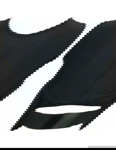 - The ability to quickly adjust to the torso is provided by an elastic strap with Velcro at the back.