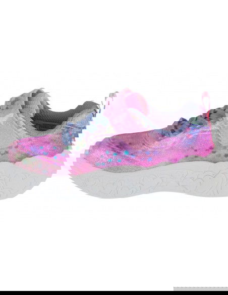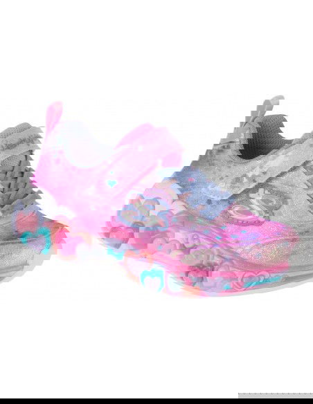 Light up her world with the Skechers Eternal Heart Lights 302696LLPMT sneakers. These dazzling shoes feature colorful heart-shaped lights in the midsole that flash with every step, making them not only stylish but also fun to wear. The glittery metallic finish adds a touch of sparkle, perfect for any fashion-forward little girl.