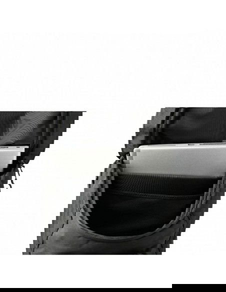 Material Description: Pro-Tarp and black polyester blend with reinforced lining construction. Features: Main compartment with round zipper. Internal mesh pocket and padded laptop sleeve. Front dry pocket with external access. DryFlow vents. Two mesh water bottle pockets. Adjustable shoulder straps.