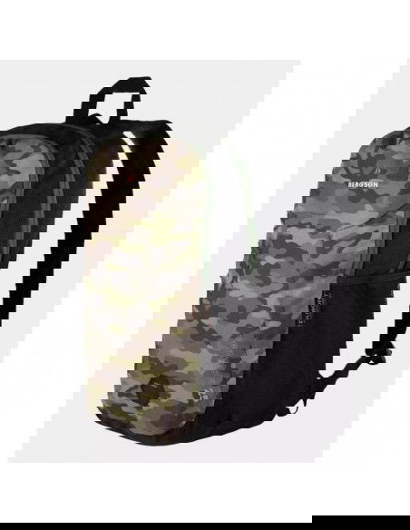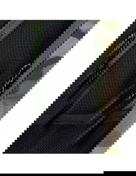 - Additional elements include D-Rings on the shoulder straps, a classic carrying handle, compression straps and mounting tapes on the sides and front.