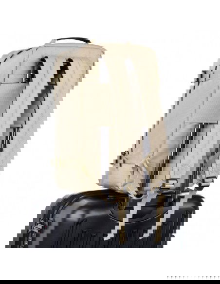 - The main compartment and three smaller pockets, including one mesh pocket, offer a well-thought-out organization of space for essential items and trinkets. An additional pocket on the outside, closed with a zipper, is ideal for documents, a phone or a tablet. A specially designed handle for attaching the backpack to the handle of a suitcase makes it easy to move around comfortably with luggage.