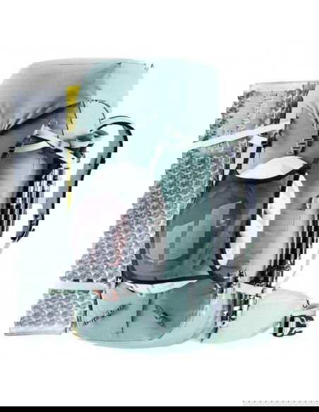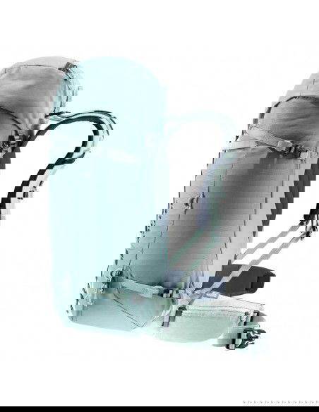 The Deuter Guide 32+8 SL Jade Frost is a professional mountaineering backpack designed specifically for women. The SL version offers a women's-specific fit thanks to a shorter carrying system and ergonomically contoured shoulder straps. Its 32-liter capacity, expandable by an additional 8 liters, makes it ideal for both day trips and multi-day expeditions. Made of durable, abrasion-resistant materials, the Alpine Back System ensures stability and comfort. It also features ice axe and trekking pole holders, a rope attachment, hydration system compatibility, and helmet compatibility. The Jade Frost color adds a modern, sporty touch.