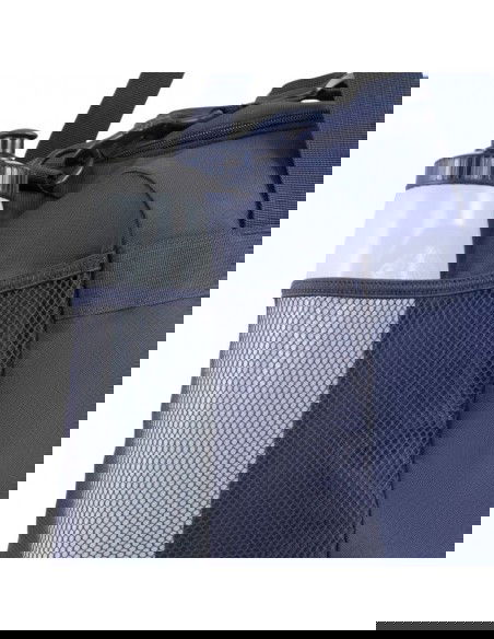 - Side pockets: one open, mesh and the other zipped.
