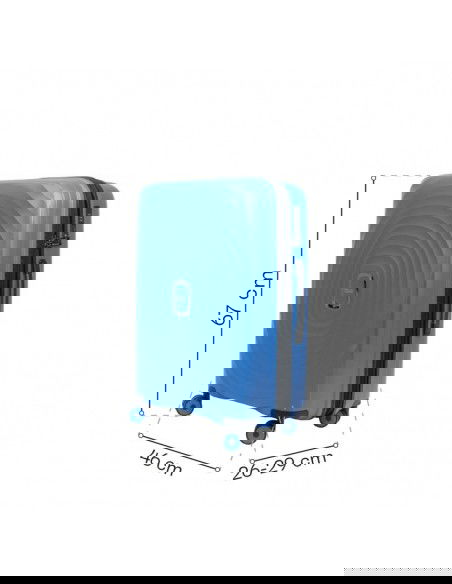 - The suitcase's dimensions allow for easy movement around the airport. It's equipped with four swivel wheels, making it easy to maneuver on various surfaces, such as sidewalks and stairs. These wheels are made of plastic, ensuring high durability and abrasion resistance.