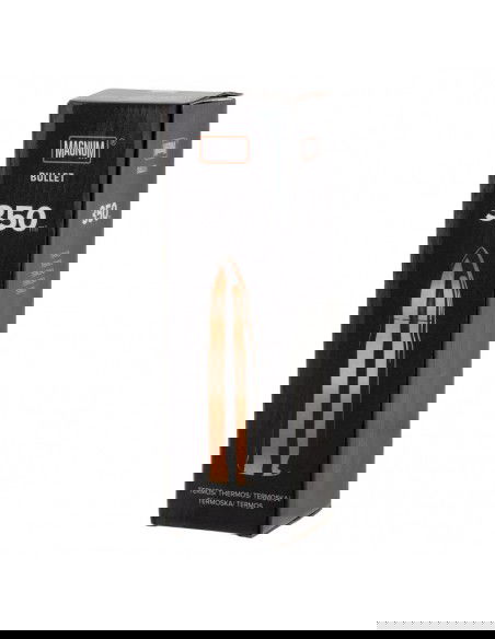 The MAGNUM BULLET is a lightweight and handy bullet-shaped thermos. Made of temperature- and corrosion-resistant stainless steel. Double-walled, vacuum-insulated construction protects contents from temperature loss. The quick-stop cap allows you to pour your beverage without having to unscrew the cap. The small size makes the thermos easy to pack and fits into the side pocket of a backpack. Key features: Capacity: 350 ml Stainless steel BPA free Vacuum insulation Original shape Quick stop cap Tight Light and handy Technical specifications: Bottle: stainless steel Interior: stainless steel Cap: PS Plug: PS, silicone