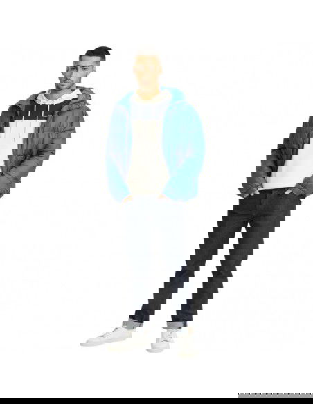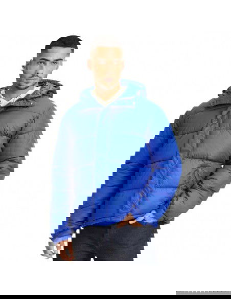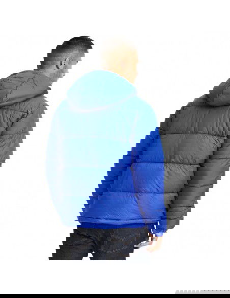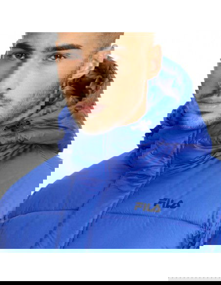 - Quilted construction with evenly distributed synthetic down filling. Non-detachable, adjustable hood set on a high collar.