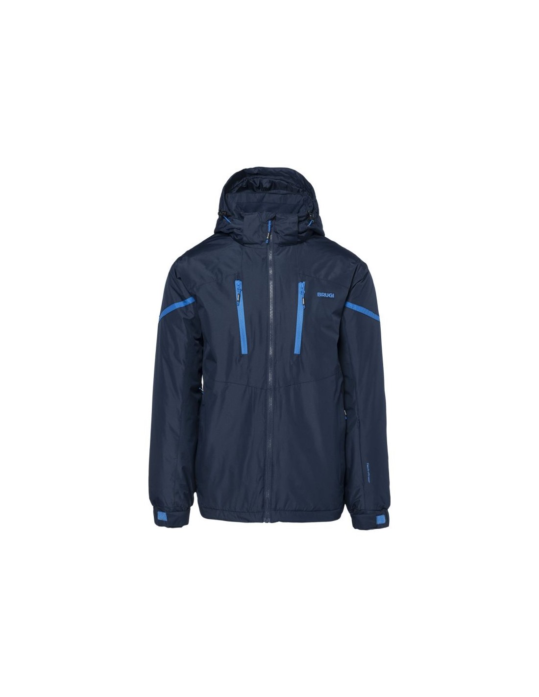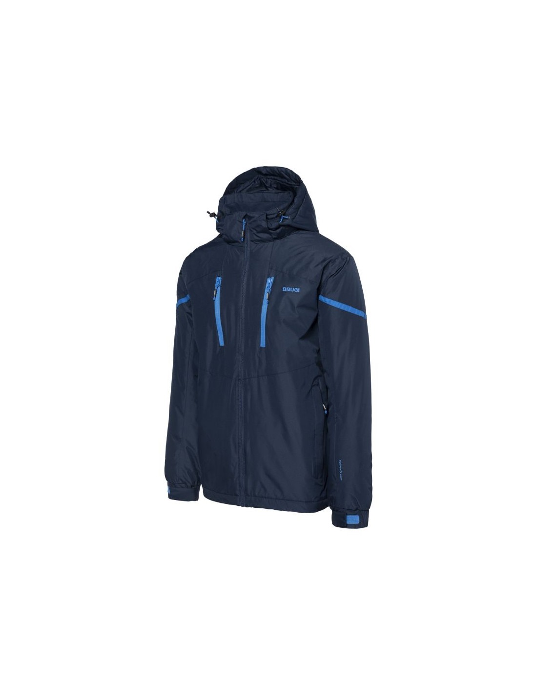 Brugi men's insulated jacket combining comfort and functionality for colder days. Made of polyester, it provides warmth and durability. The jacket has an adjustable hood that protects against wind and rain, and Velcro cuffs allow for a perfect fit and heat retention.