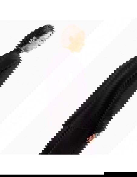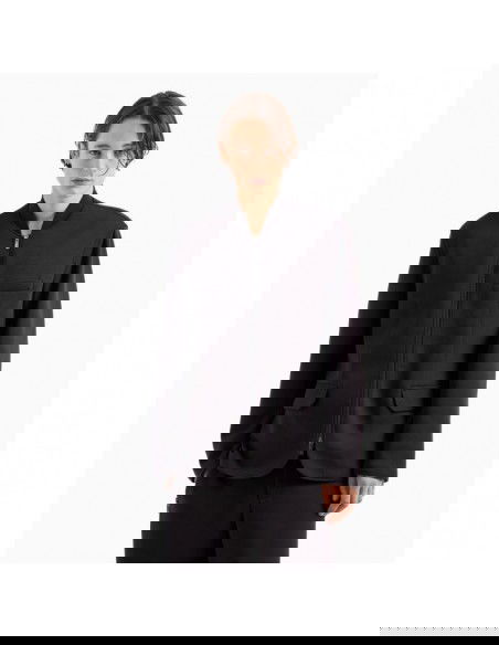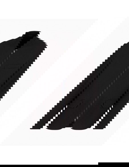 • Made of a bonded cotton blend, it fastens with a zipper and has a smooth collar, flap pockets and a lining for warmth.