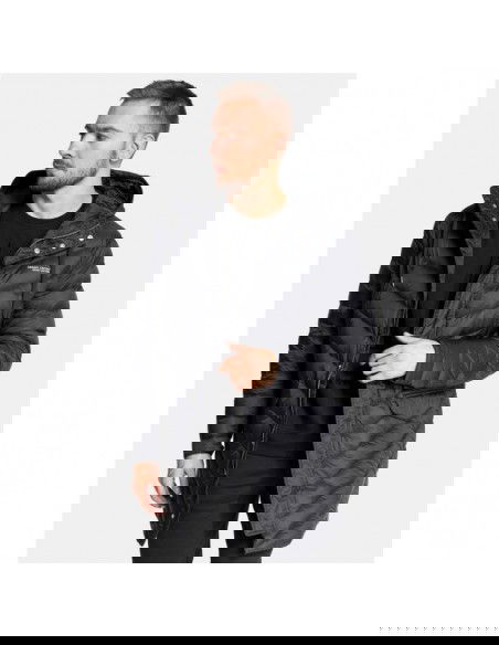 - This long men's winter jacket provides comfort and warmth in frosty weather.