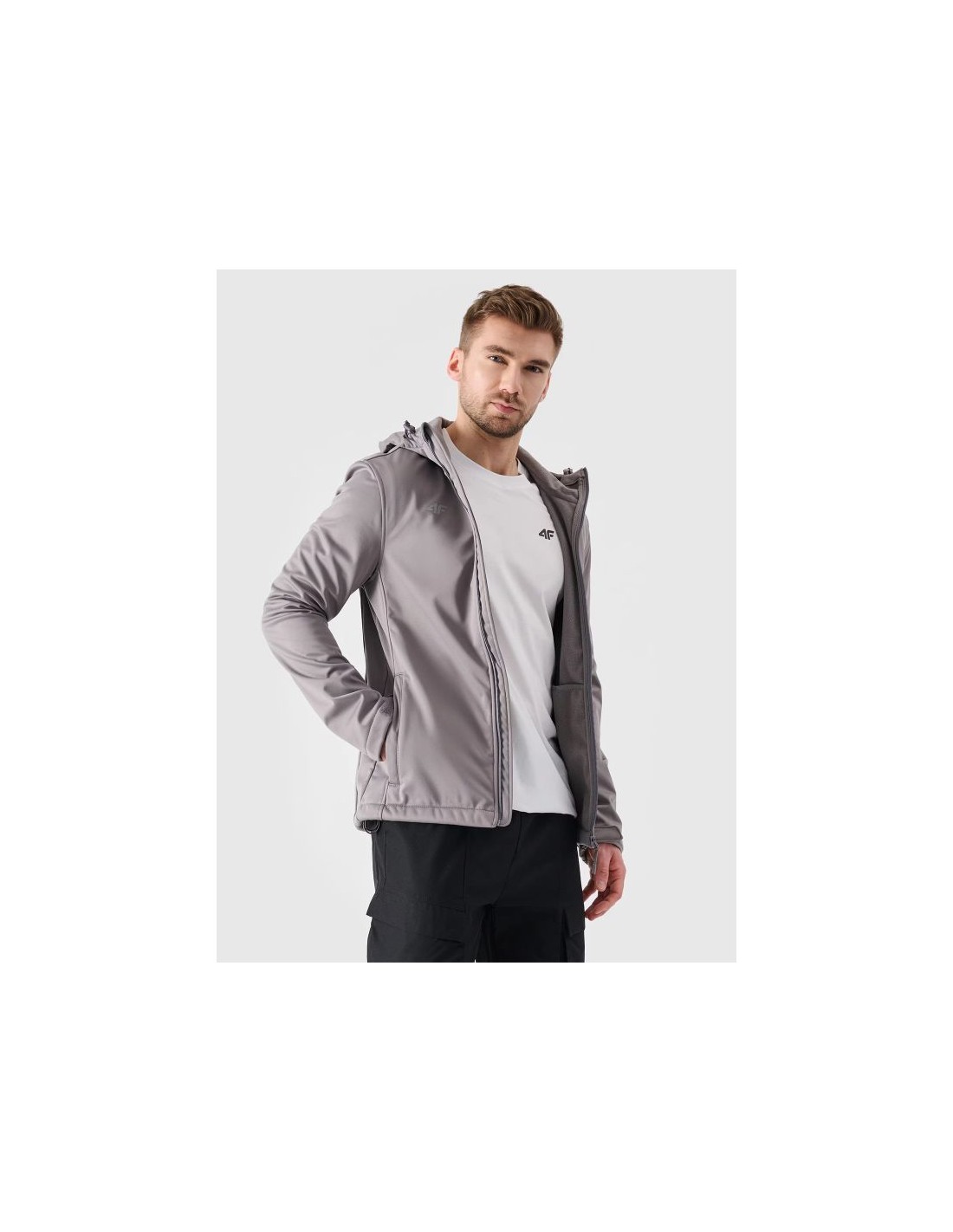 Stay protected from the elements with the Men's 4F softshell jacket featuring a 5000 windproof membrane.
