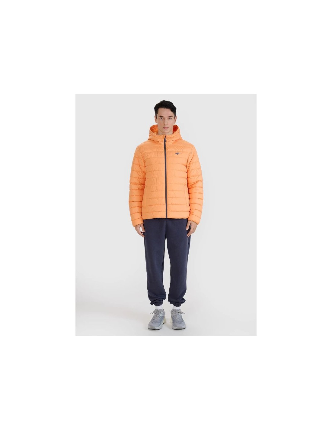 Men's Hooded Down Jacket - Lightweight Warmth and Everyday Comfort This men's down jacket is the perfect option for warmer days during the transitional period, combining functionality, comfort, and modern design. Its lightweight construction makes it suitable for both everyday and sports activities, ensuring comfort and adequate thermal insulation. Characteristics: Regular fit – adapts to the body, ensuring freedom of movement. Recycled Down Fill – Synthetic down provides durability and excellent insulating properties, even in wet conditions. Hydrophobic impregnation coating – protects against moisture absorption, ensuring comfort on rainy days. Integrated hood – not adjustable, provides additional protection against the cold. High collar – protects the neck against cold and wind. Rip-stop material – tear-resistant, ensures long-lasting durability. 2 open side pockets and 1 inner pocket with a zipper – a practical solution for storing small items. Cuffs with elastic band – for better protection against wind. Elastic rubber at the bottom – additional protection against cold. The jacket combines functionality with a fashionable look, perfect for spring and autumn days.