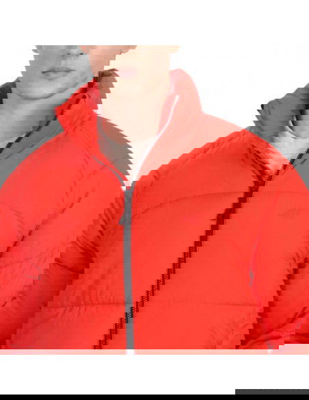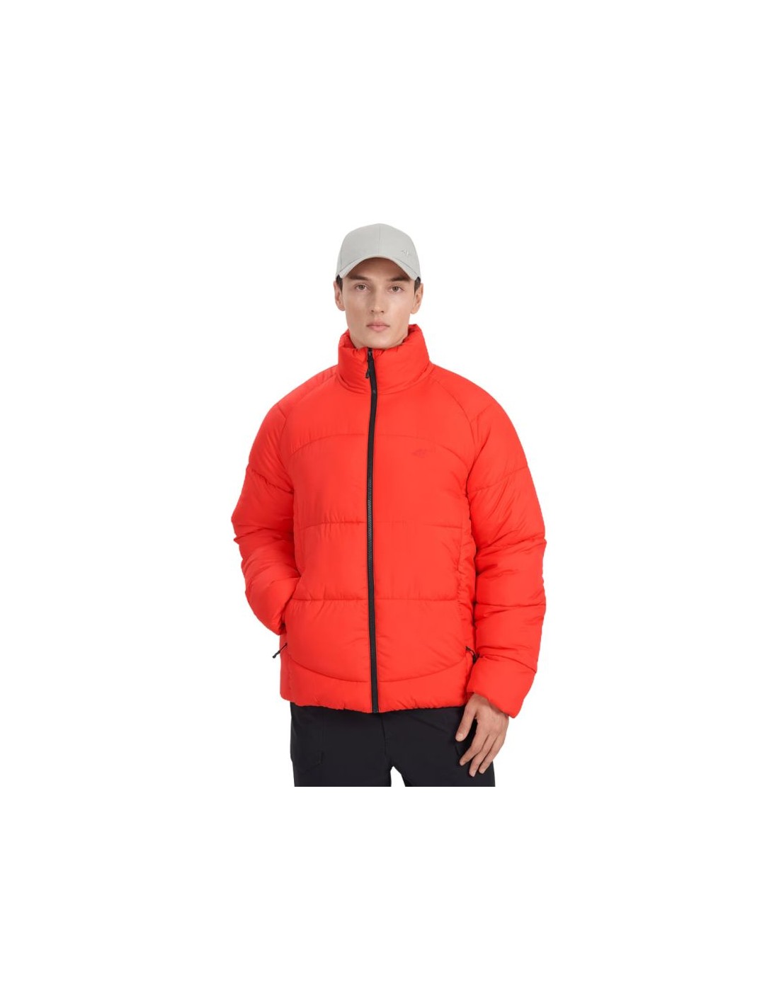 Men's down jacket 4F M0707 red 4FRAW25TDJAM0707 62S Men's 4F jacket provides optimal thermal comfort and protection. Technical data: Main material: 100% polyester Lining: 100% polyester Filling: synthetic down, 100% polyester Regular cut - comfortable fit to the body without feeling embarrassed Standard length to the hips - universal cut for everyday use Classic horizontal quilting - aesthetic appearance and even distribution of insulation Smooth polyester lining - comfort of wearing and ease of putting on Designed for colder days - effective protection against cold Hydrophobic outer coating - limits moisture absorption and increases protection against rain High collar - additional neck protection against the wind 2 side zip pockets - safe storage of the most necessary things Inner zip pocket - practical space for documents or phone One-way zipper with a wind flap - limits the penetration of cold air Bottom with elastic band - better fit and protection against wind Rip stop material - durable, Tear-resistant fabric with reinforced structure · Recycled synthetic filling - effective thermal insulation even in humid conditions