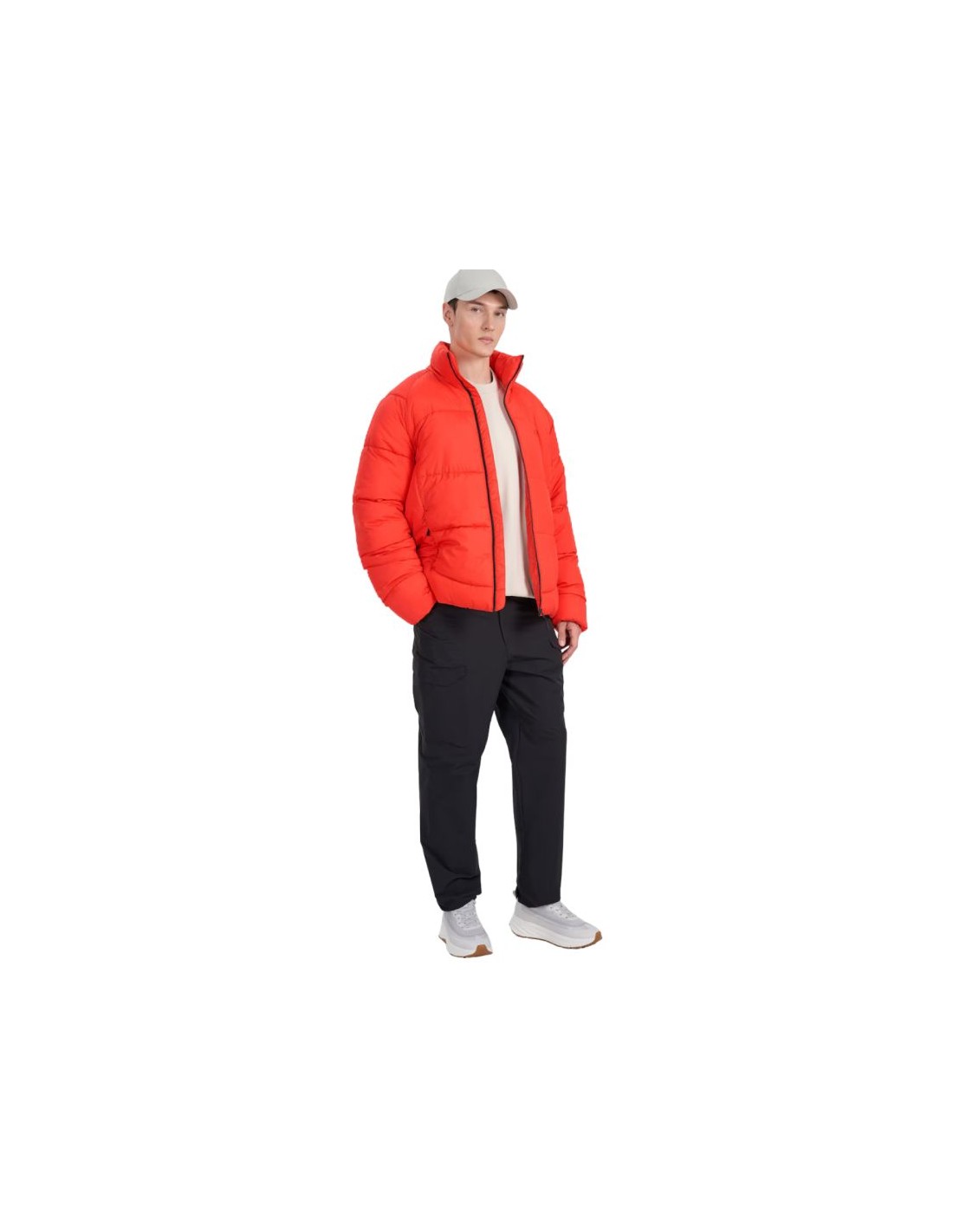 Stay warm and stylish in this red 4F Men's down jacket, perfect for outdoor adventures in the cold weather.