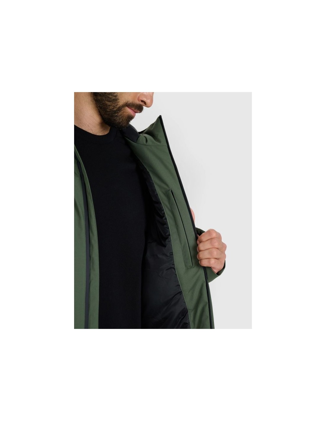 Men's transition jacket with NeoDry 10000 membrane – durability and everyday comfort This men's transitional jacket is designed for cool and cold days. It combines moisture protection , thermal comfort , and the durability of ripstop fabric . A NeoDry 10,000/8,000 membrane effectively protects against rain and snow, while fully taped seams and a hydrophobic coating strengthen the barrier against inclement weather. The regular fit and practical details—from the adjustable hood, through ventilation and numerous pockets, to the laminated zipper—ensure functionality for everyday use and active activities. CHARACTERISTICS: Regular fit – comfortable fit to the body. Standard cut – hip length. Quilted lining – increases wearing comfort. A jacket for cool and cold days – suitable for lower temperatures. Hydrophobic coating – limits the absorption of moisture by the material. Waterproof, taped seams – full protection against precipitation. Integrated hood with adjustment – better protection against weather conditions. Adjustable cuffs – Velcro closure. 2 side zippered pockets – convenient storage for small items. 2 chest pockets with laminated zippers – waterproof compartments. Internal zippered pocket – a safe place for your phone or wallet. Laminated main zipper – with internal wind flap. Bottom adjustment – tunnel drawstring with stoppers. Rip-stop fabric – resistant to damage and tearing. Polyester insulation – ensures thermal comfort. NeoDry 10000/8000 membrane – protection against moderate rainfall and good level of breathability. Additional technologies: Hydrophobic impregnation – creates a barrier that repels water, reducing its absorption. Fully taped seams – every seam is secured, increasing waterproofness.