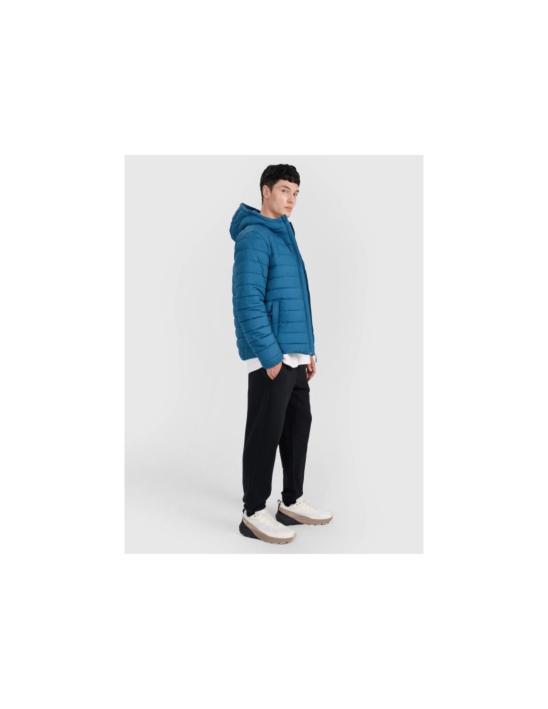 Men's 4F down jacket – light, warm and windproof The 4F men's down jacket is a lightweight, versatile piece, perfect for everyday wear and the cooler days of the transitional period. It combines style and functionality – it provides protection from the cold, is easy to care for, and exceptionally comfortable to wear. Key features Regular fit – comfortable fit without restricting movement. Size range S–3XL – wide selection for different body types. Standard hip length – a universal style for everyday wear. Classic horizontal quilting – even filling distribution and stylish look. Lightweight construction – comfortable to wear without unnecessary weight. Hydrophobic coating – limits moisture absorption. Rip stop fabric – increased tear resistance and durability. Recycled synthetic filling – retains warmth even after contact with moisture. Integrated hood without adjustment – protects the head from cold and light rain. Stand-up collar – additional neck protection against the wind. Elasticated cuffs and hem for better fit and protection against heat loss. 2 side pockets with zippers – safe storage of small items. Internal zippered pocket – a practical place for valuables. Main zipper with wind flap – increased protection against cold. Functionality and comfort for every day The 4F down jacket is an excellent choice for active people who value lightweight comfort. Thanks to its recycled synthetic fill, it maintains its thermal properties even in damp conditions and is easy to care for. Its lightweight construction makes it easy to pack and take with you on any trip. Advanced solutions Synthetic down – retains warmth even after contact with moisture, quick-drying and anti-allergic. Hydrophobic impregnation – prevents water absorption and keeps dry. Check out more models in the category: Men's down jackets