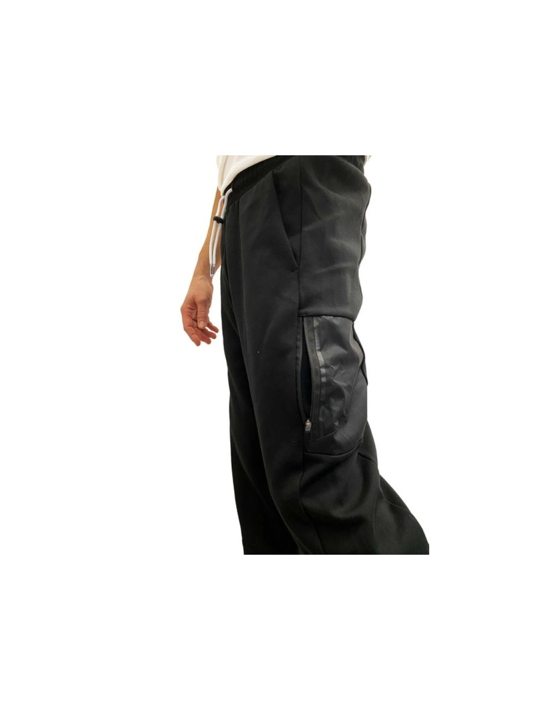 - The trousers have two side pockets and one leg pocket with a polyester coating.