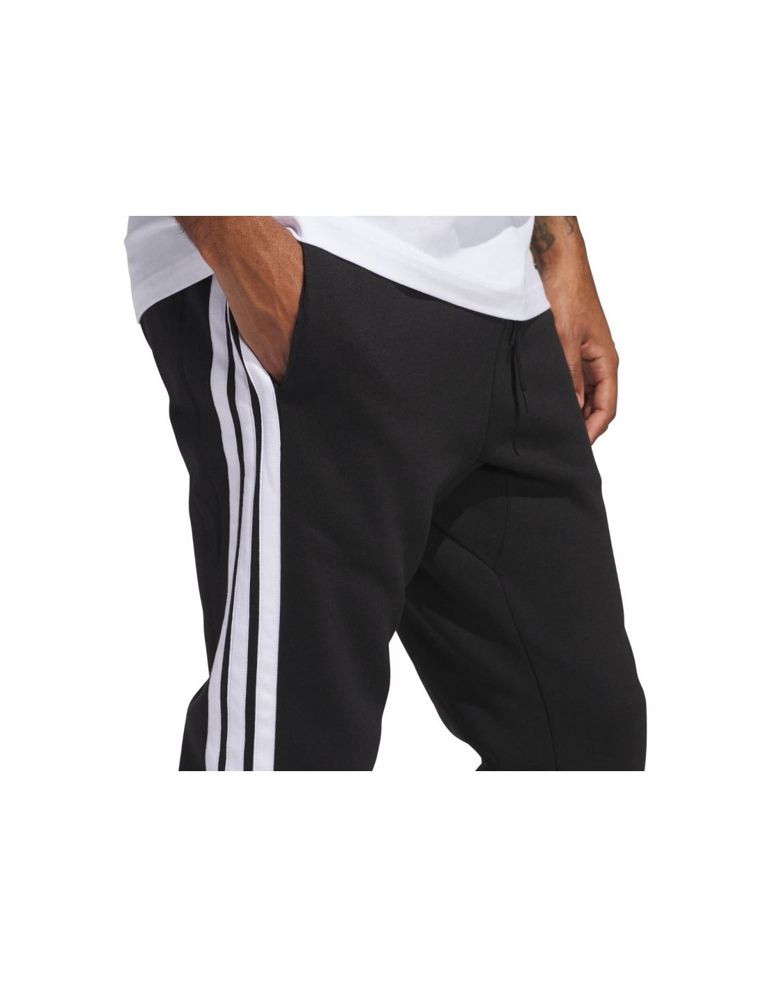 • Waistband with external drawstring adjustment. Open pockets. Sporty design with stripes on the legs and a discreet adidas logo.